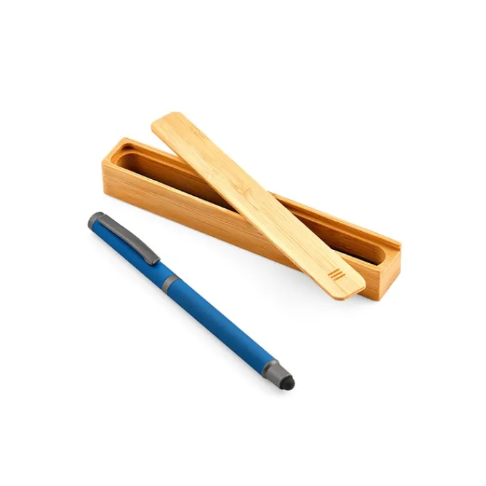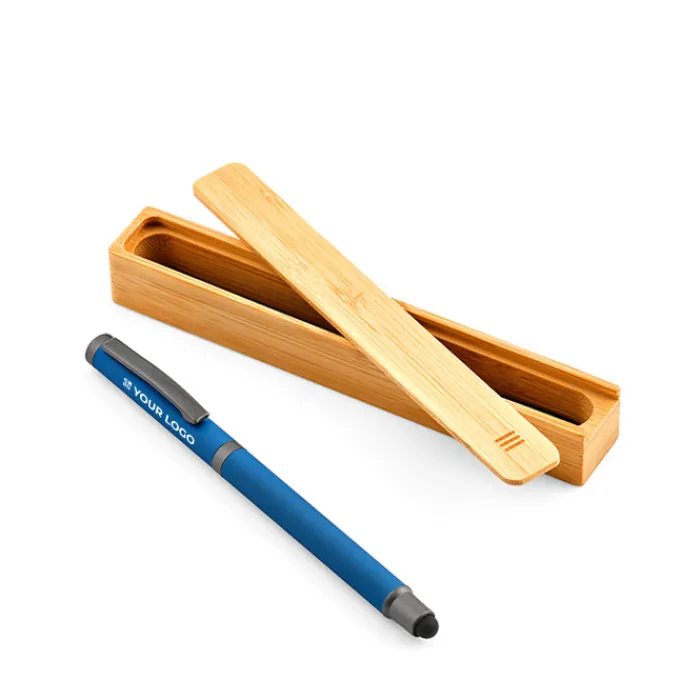 Penna con cappuccio e punta touch realizzata in acciaio inossidabile riciclato. Può scrivere per circa 1 km con inchiostro nero Dokumental®. Consegnata in un astuccio di bambù, che aggiunge un tocco ecologico.