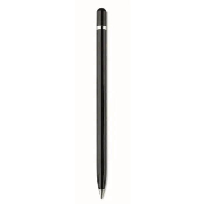 Penna in alluminio senza inchiostro. La penna non si esaurisce e scrive grazie alla sua speciale punta realizzata in una lega di diversi metallli. Ha un tratto preciso come quello di una matita, ma permanente come quello di una penna.