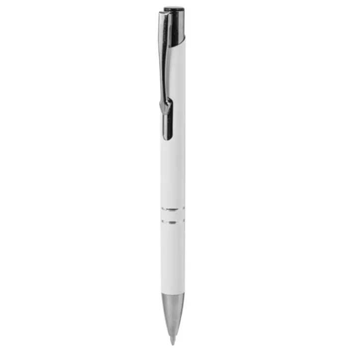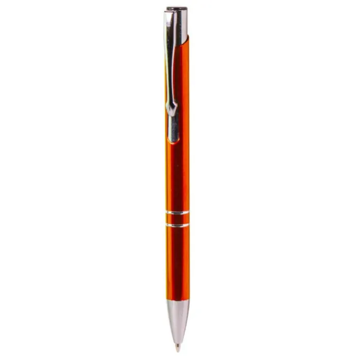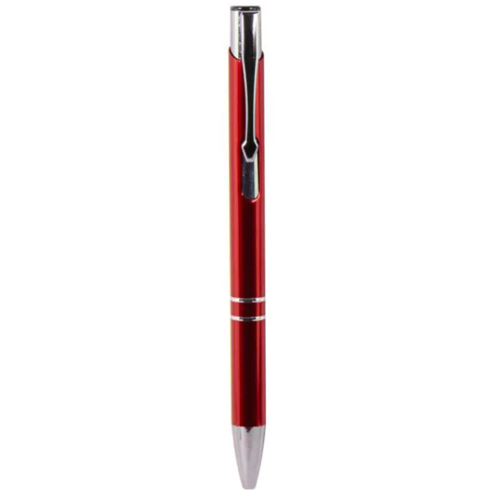 Penna realizzata in alluminio riciclato in diversi colori, con due anelli metallici lungo il corpo della penna. Dotata di certificato di riciclo.