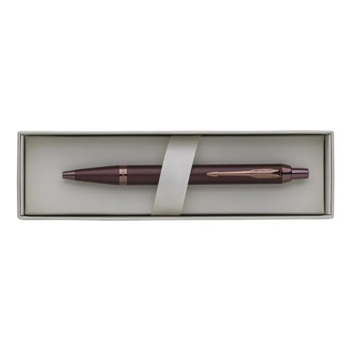 Penna a sfera IM Monocromatico della Parker con rivestimento in PVD. Meccanismo a scatto ed inchiostro blu. Consegnata in elegante confezione regalo.