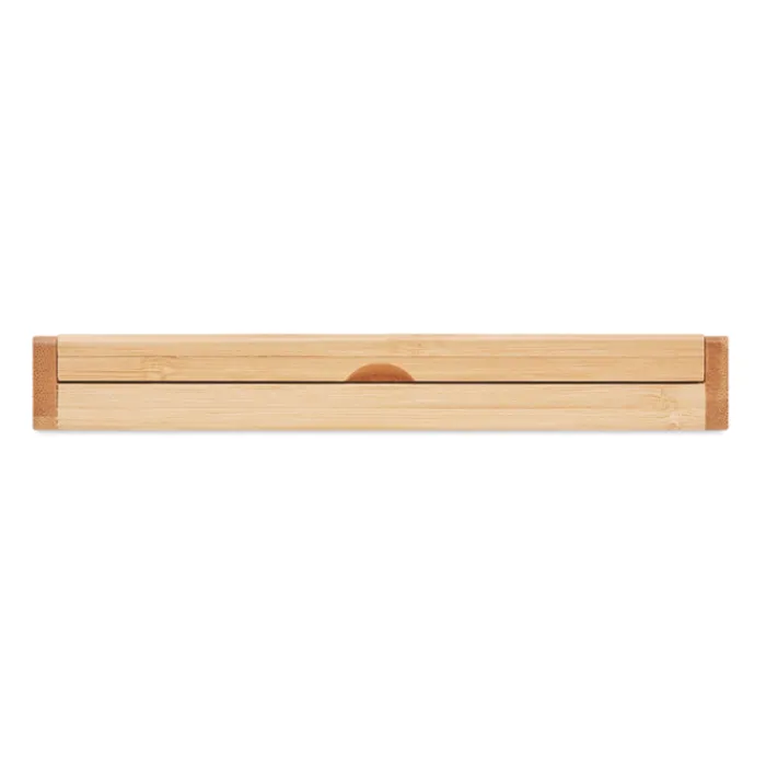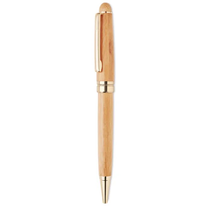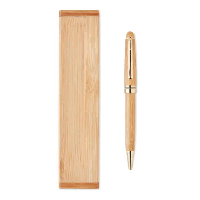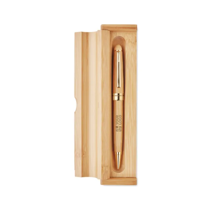 Penna a sfera con meccanismo twist presentata in una in scatola di bambù. Inchiostro blu.