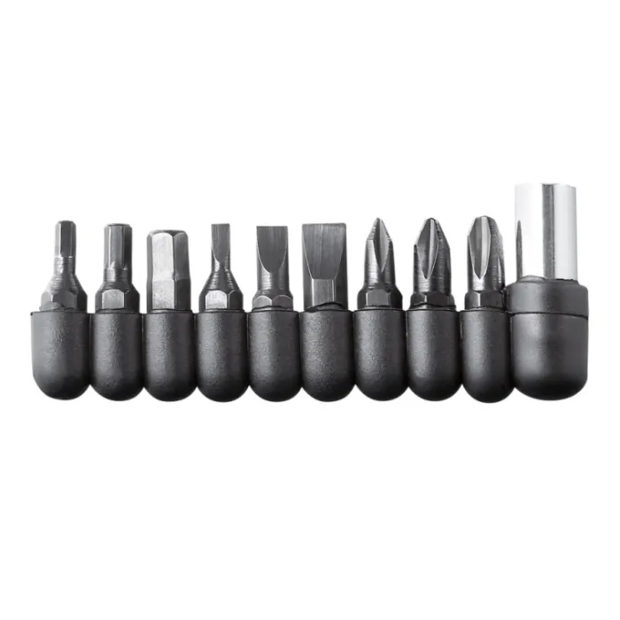 Mini set di attrezzi multifunzione in acciaio inossidabile e legno (19 funzioni). Fornito in confezione di poliestere.