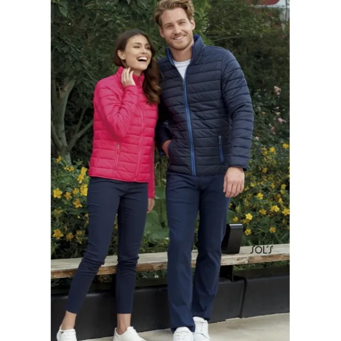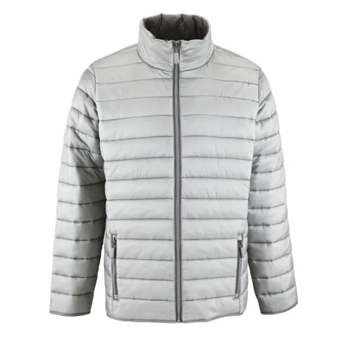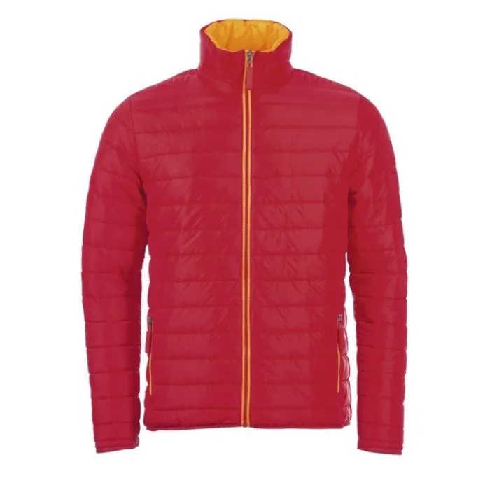 Piumino leggero dal taglio attillato da uomo da 180 g/m². Leggermente imbottito, colore a contrasto nella fodera e nelle cerniere. Ha 2 tasche con zip rifinite a contrasto in tinta con la fodera, collo alto, rifiniture tono su tono sulle maniche e sul fondo del capo. Antivento e idrorepellente. Tessuto esterno e fodera in 100% nylon, imbottitura: 100% poliestere.