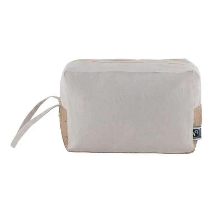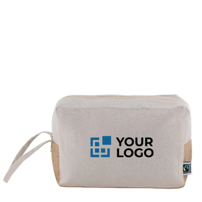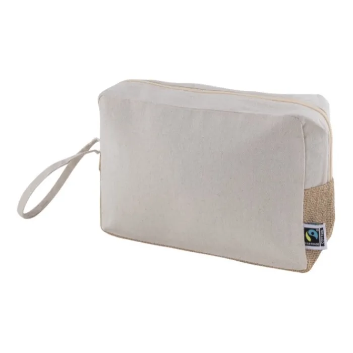 Pochette realizzata con cotone proveniente dal Fairtrade da 220 g/m² con base e manico in iuta da 330 g/m².