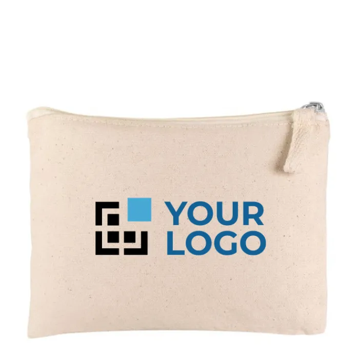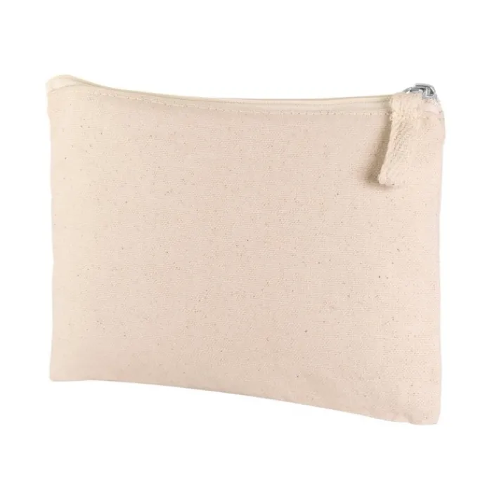 Pochette realizzate in tela di cotone biologico da 280 g/m² in colore naturale e tirante della cerniera abbinato.