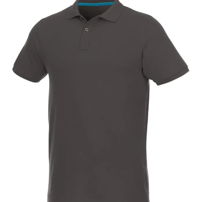 Polo da uomo a manica corta in tessuto organico riciclato certificato GOTS e GRS. Allacciatura con 2 bottoni in metallo eco sostenibile. Colletto piatto. Polsini a costine. Nastro interno del colletto a 2 colori. Doppia cucitura su colletto e sulla parte inferiore. Materiale: 70% Cotone biologico piquet certificato GOTS e 30% poliestere riciclato certificato GRS da 220 g/m².