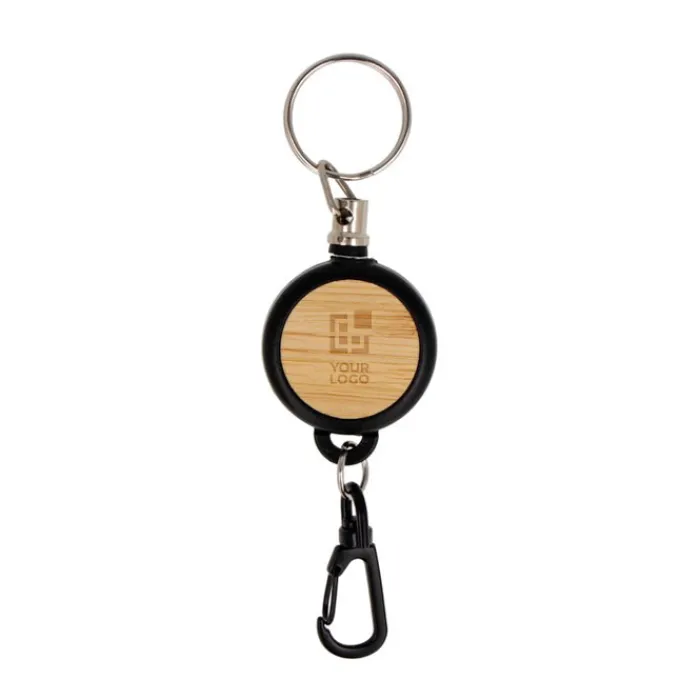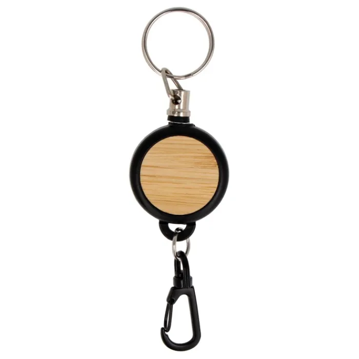 Porta badge in ABS riciclato e bambù: una soluzione elegante e sostenibile per il tesserino di accesso. Elegante, ecologico e funzionale. Un mix perfetto di design moderno e bellezza naturale. Cavo estraibile di 60 cm. Diametro: 35mm.