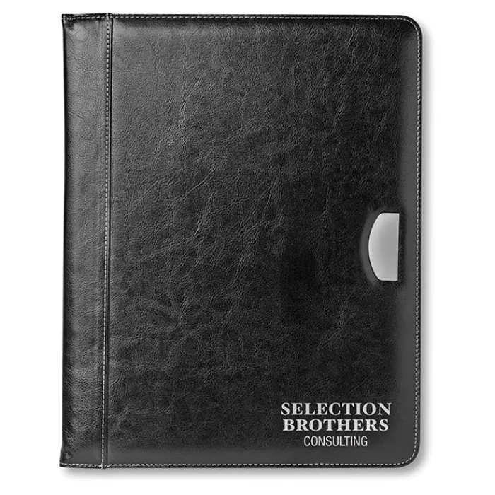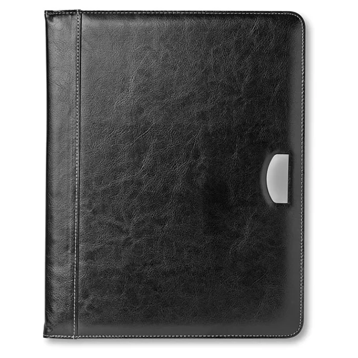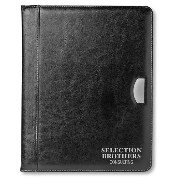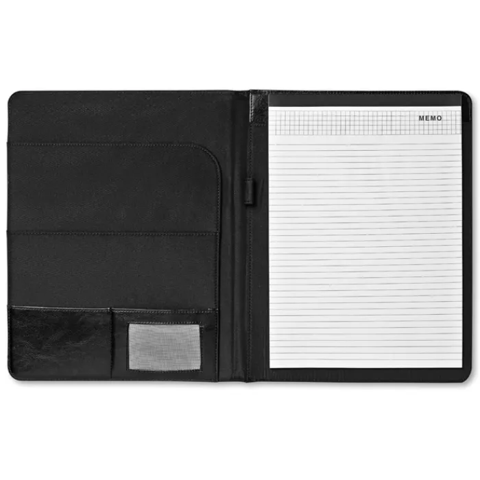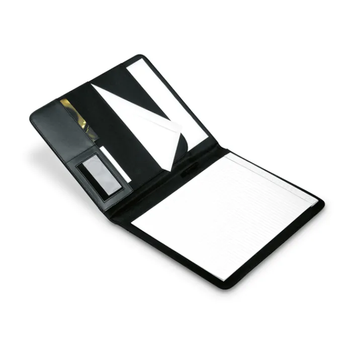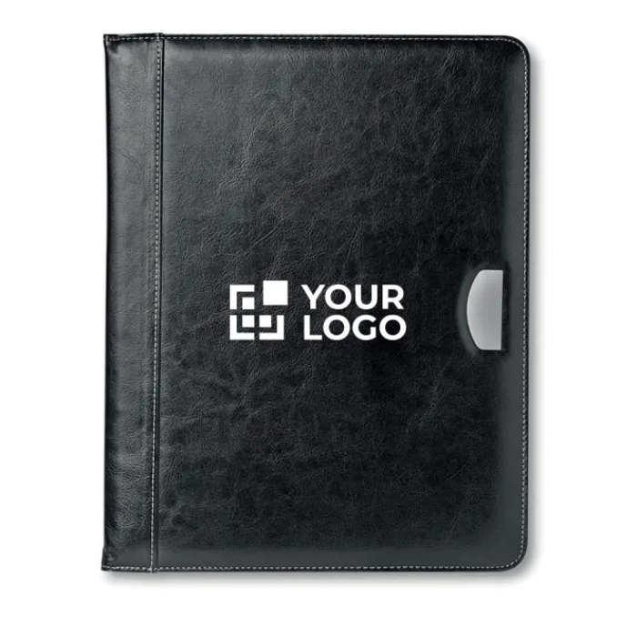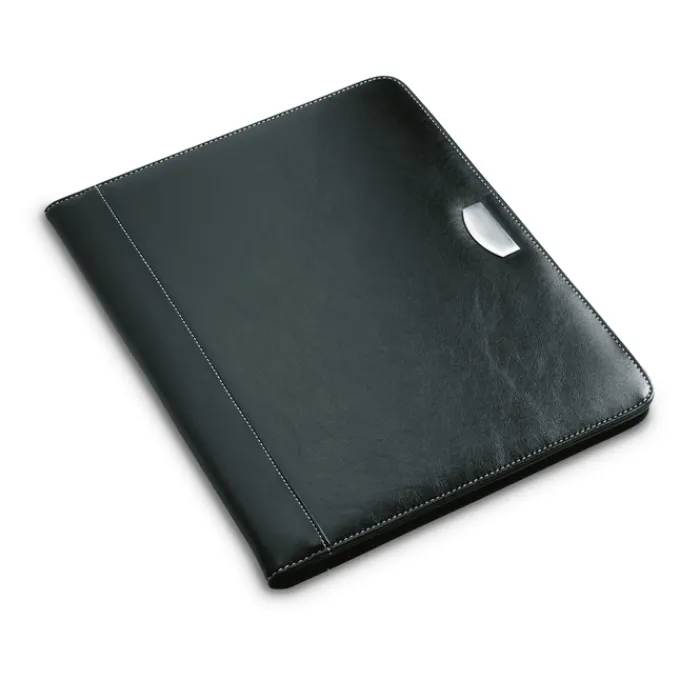 Portadocumenti A4 in pelle sintetica (PU), con placca metallica personalizzabile, comprensivo di un block notes da 20 fogli a righe.