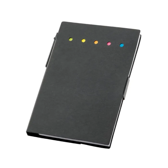 Block notes da 50 fogli bianchi e 6 set di post-it colorati da 25 fogli ciascuno. Include penna in carta kraft, inchiostro blu.