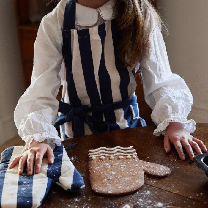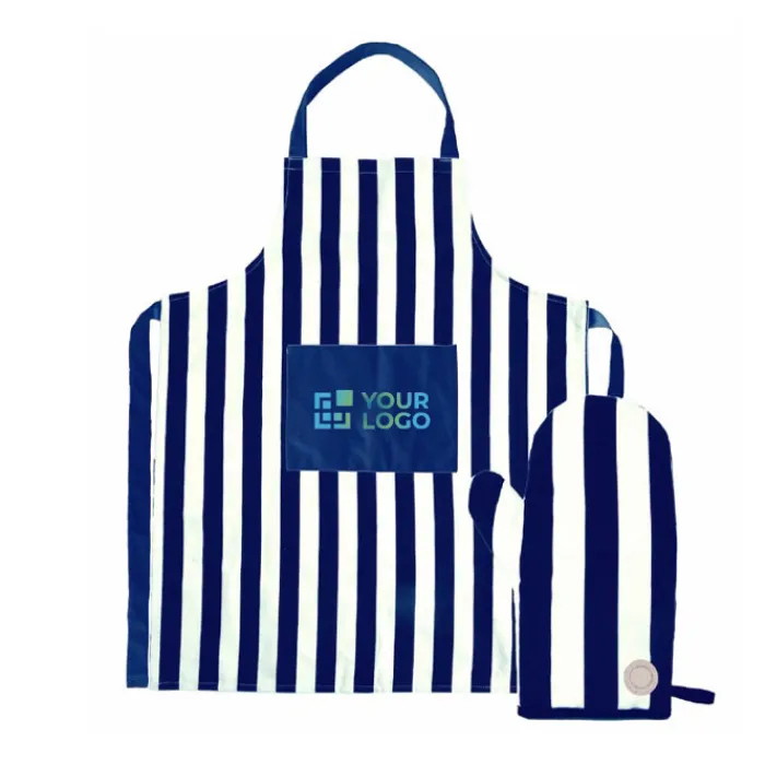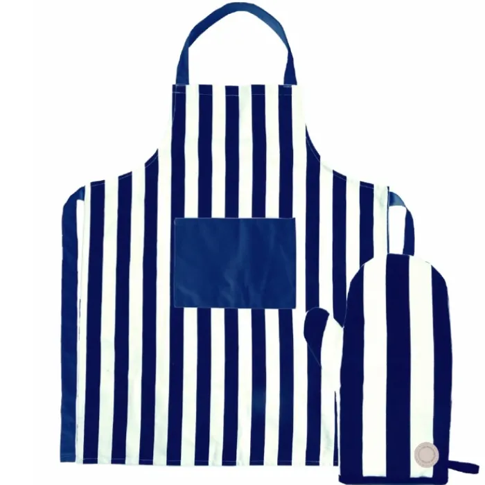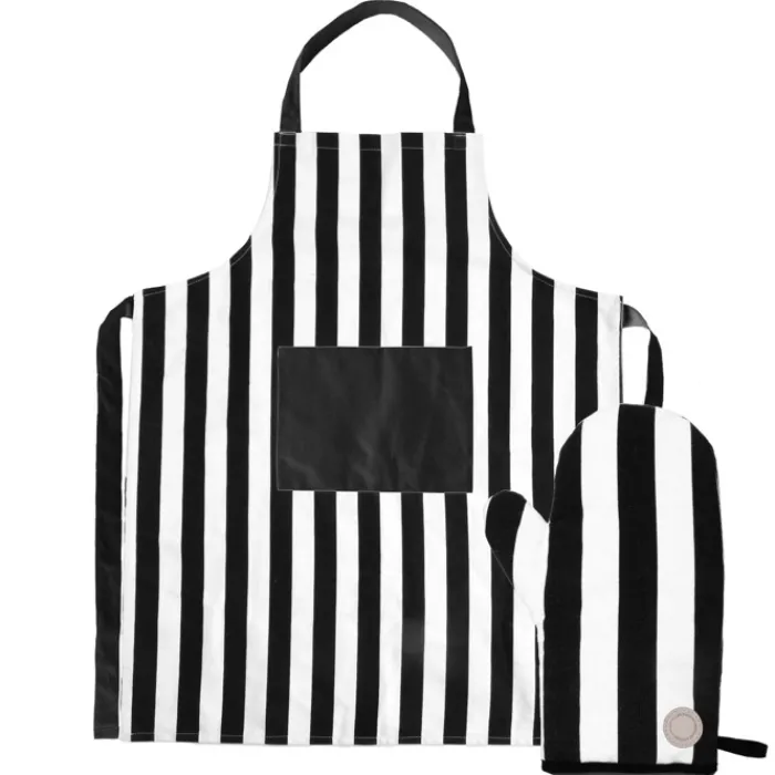 Grembiule con guanto da forno in cotone e poliestere riciclato con design a righe. È l’unico abbigliamento necessario per cucinare, sia all’aperto che in casa.