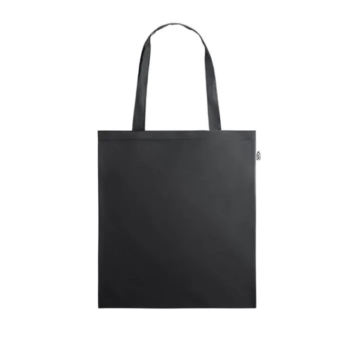 Shopper in rPET 190T con manici da 60 cm. La plastica riciclata che contribuisce alla riduzione dei rifiuti nell’ambiente.
