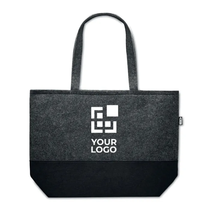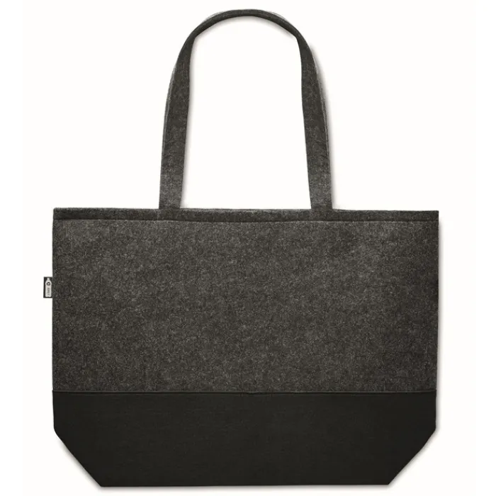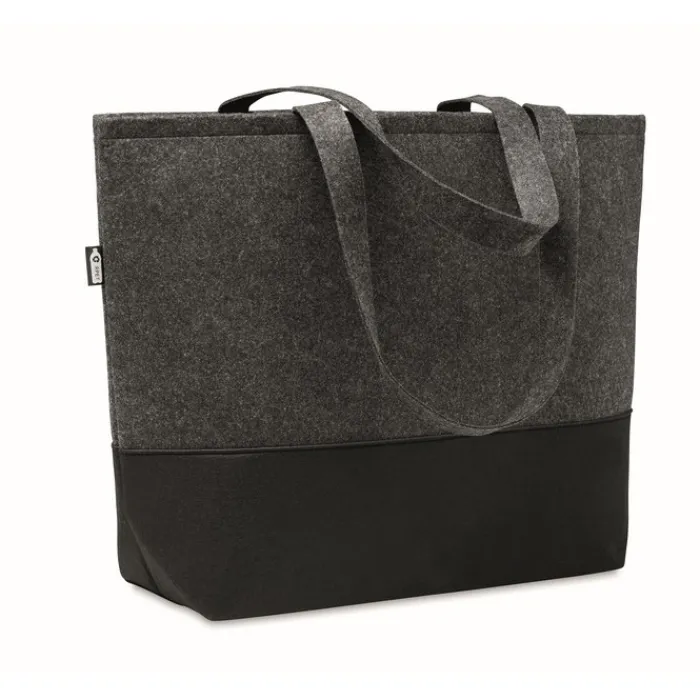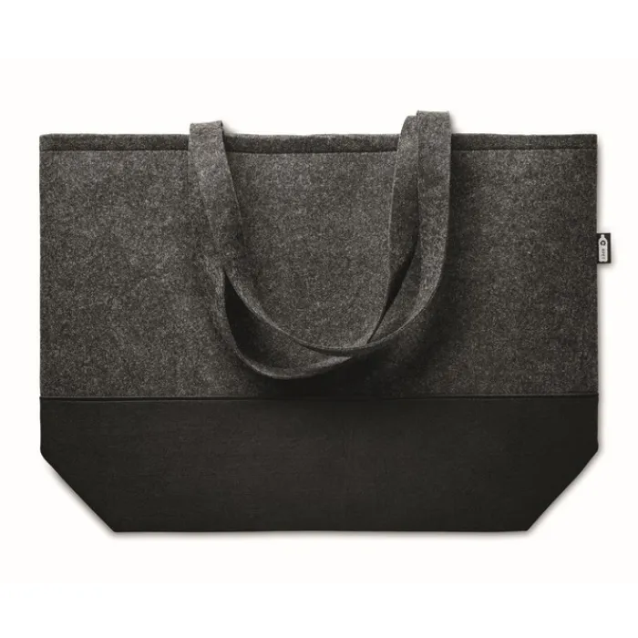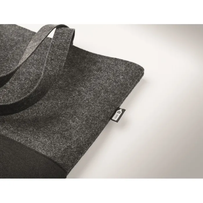 Shopper in feltro RPET con manici lunghi e base in nero.