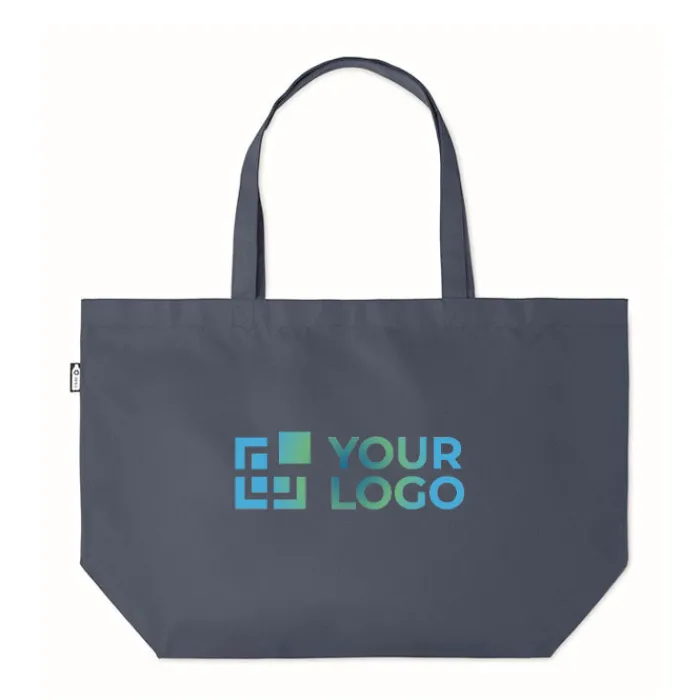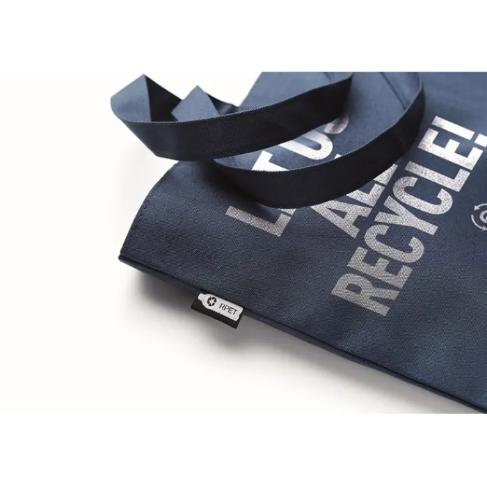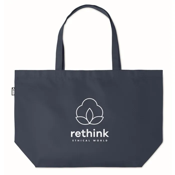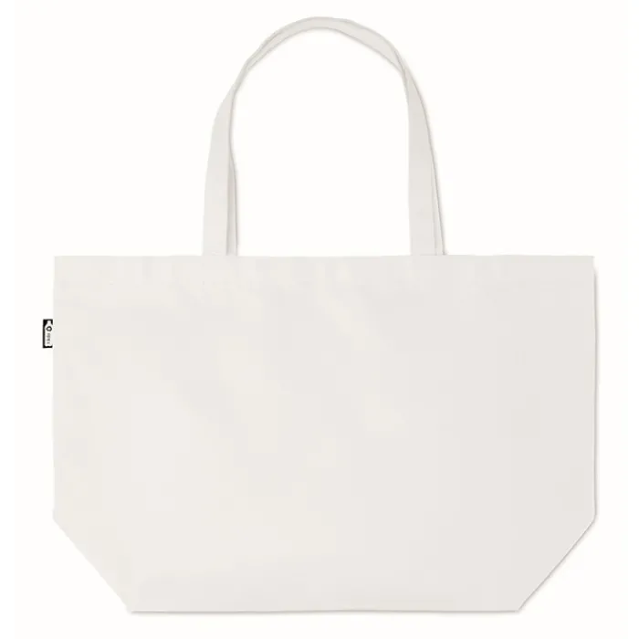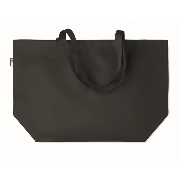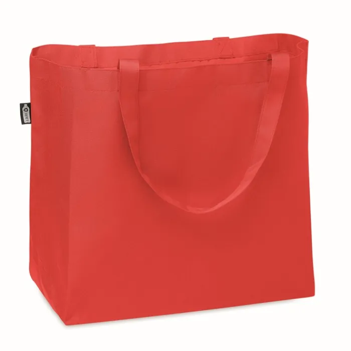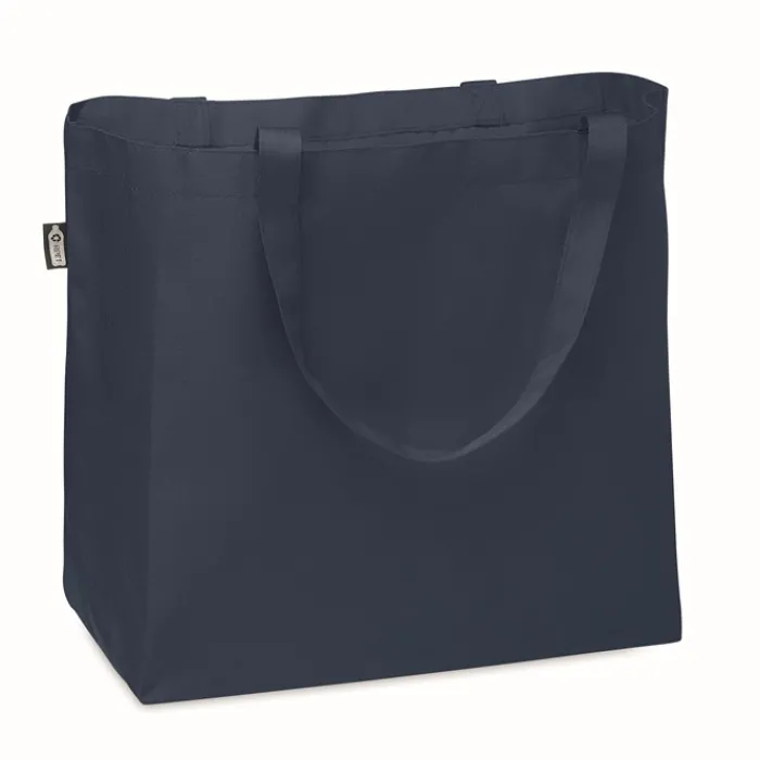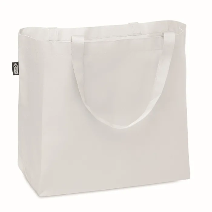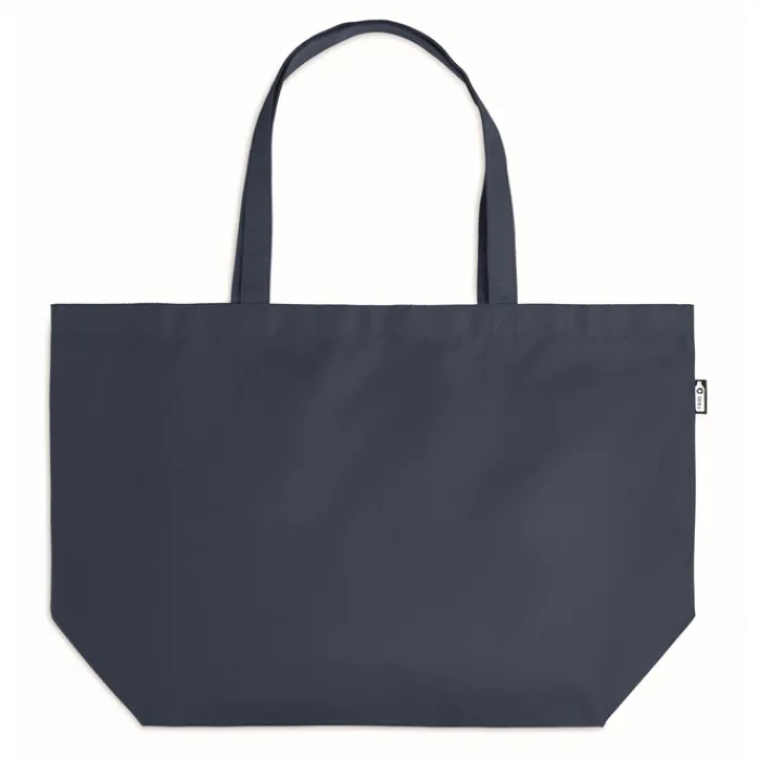 Ampia shopper in RPET 600D con manici lunghi e soffietto.