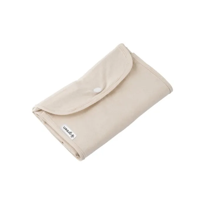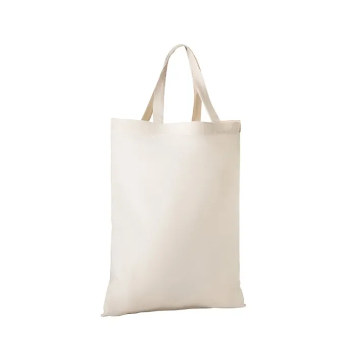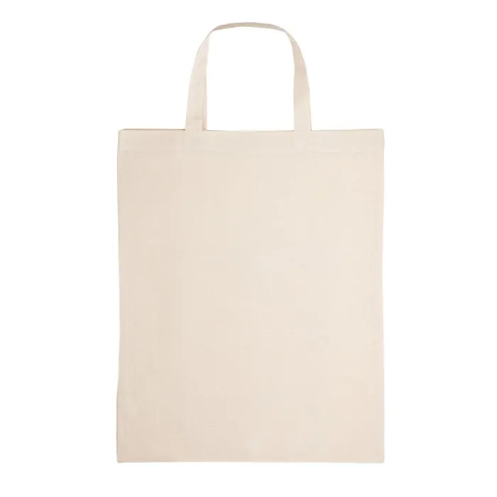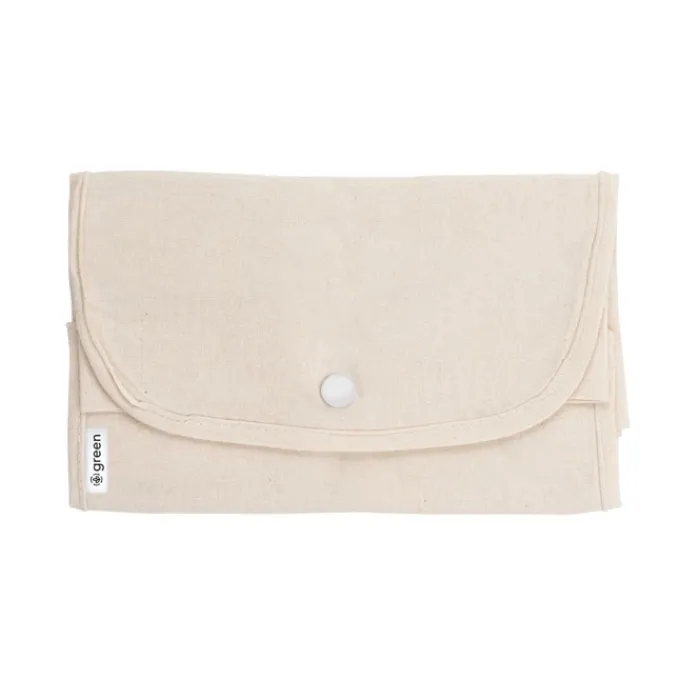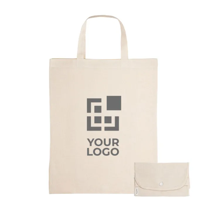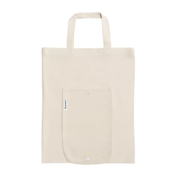 Shopper pieghevole color naturale (140 g/ m²) in cotone (50%) e cotone riciclato (30%) con manici di 38 cm.