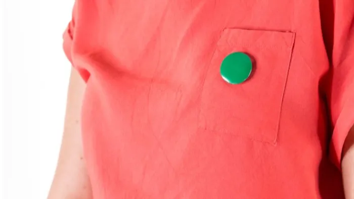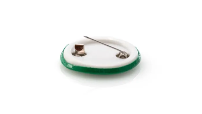 Spilla in colori assortiti con corpo in finitura lucida in colori assortiti e chiusura di sicurezza.
