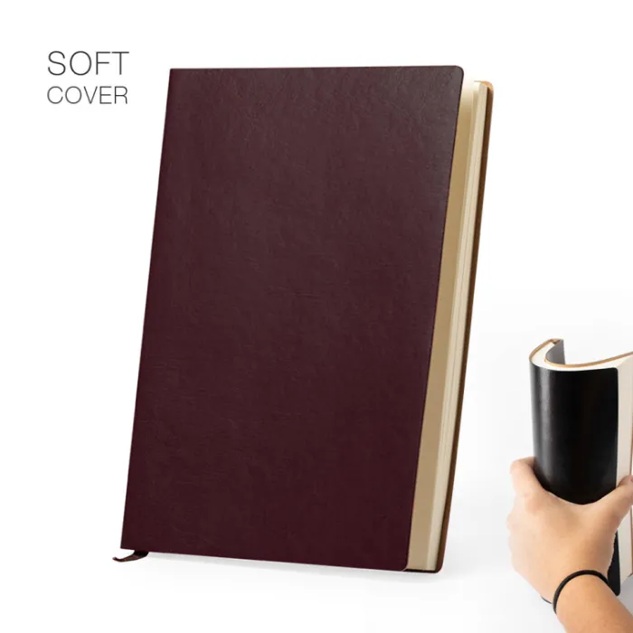 Taccuino con copertina flessibile in similpelle. Contiene 200 pagine a righe con un segna pagina in tessuto coordinato.