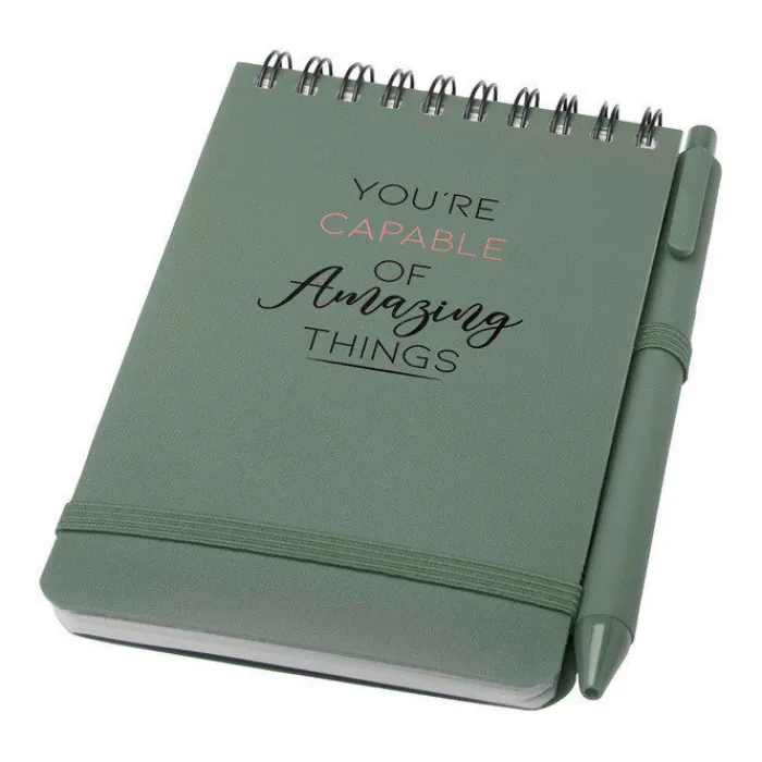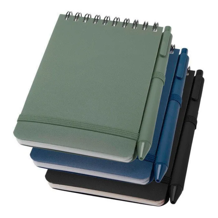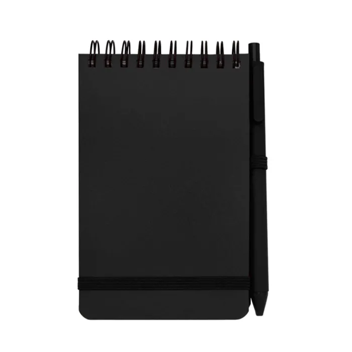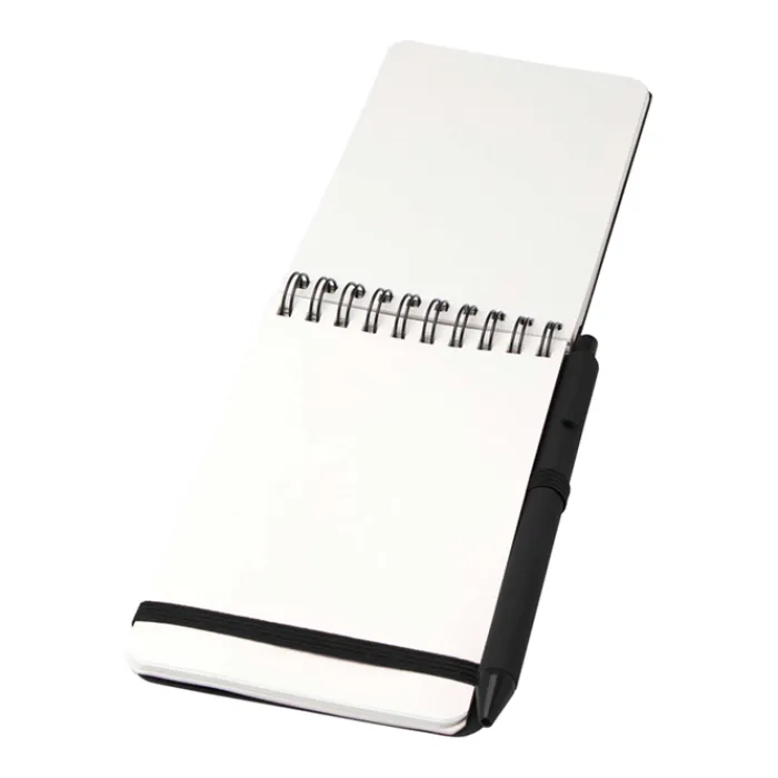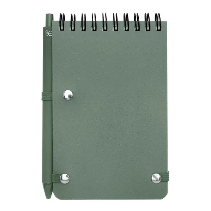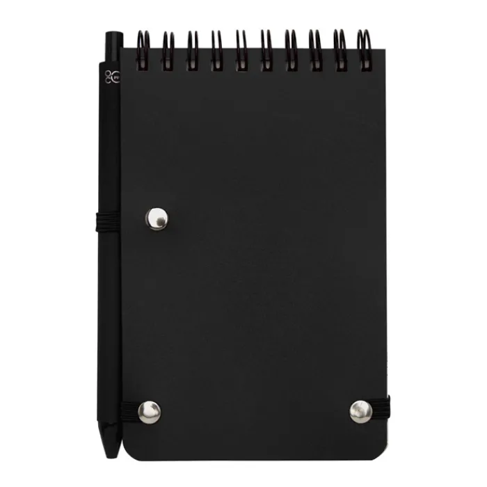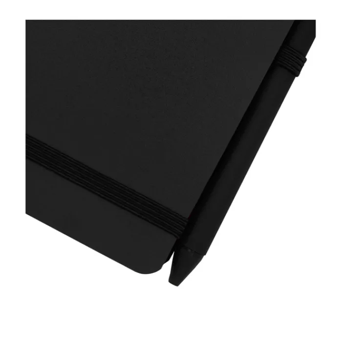 Quaderno con copertina rigida A6 realizzato in plastica riciclata dagli oceani, con 80 fogli a righe color crema da 70 g/m². Angoli arrotondati, chiusura elastica e supporto per penna. La penna con inchiostro nero è anch’essa realizzata in plastica riciclata dagli oceani. Lunghezza di scrittura: 1000 metri. Punta: 1,0 mm.
