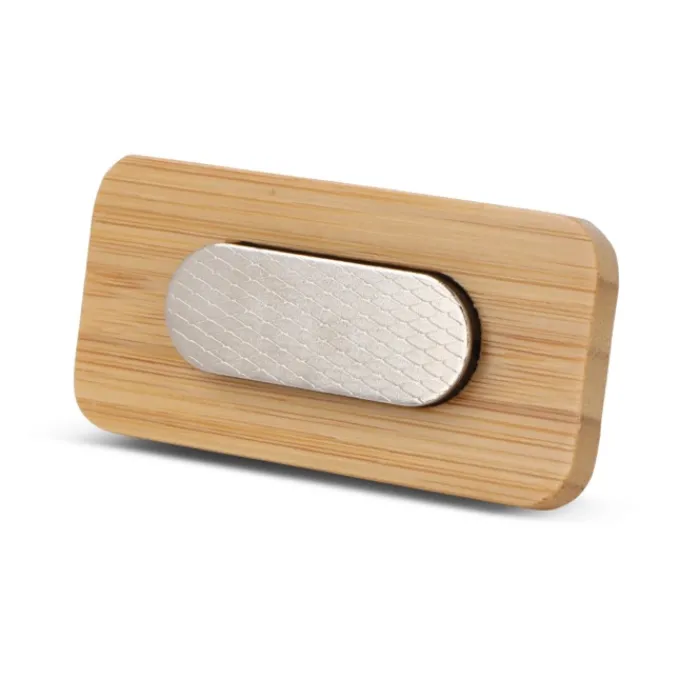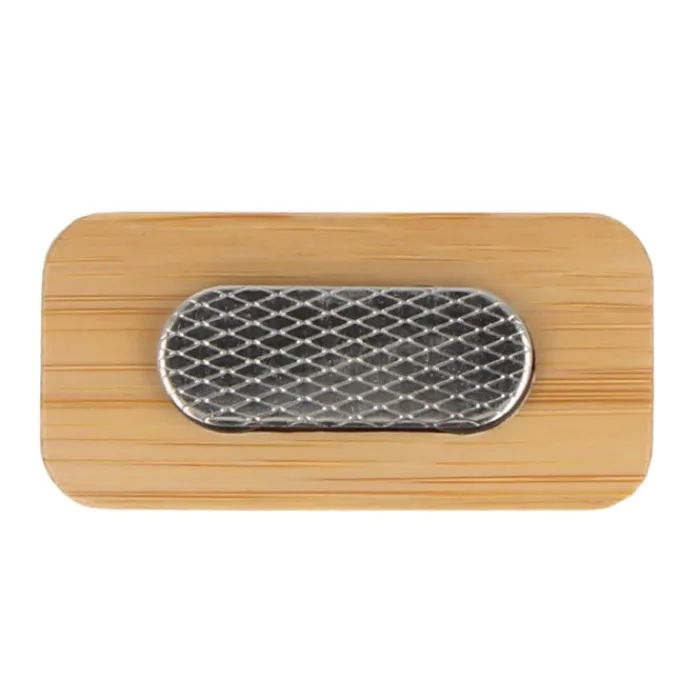 Targhetta identificativa realizzata in bambù ecologico e dotata di un potente magnete, eliminando la necessità di spille.