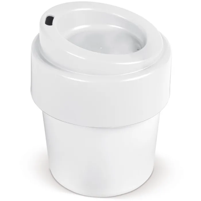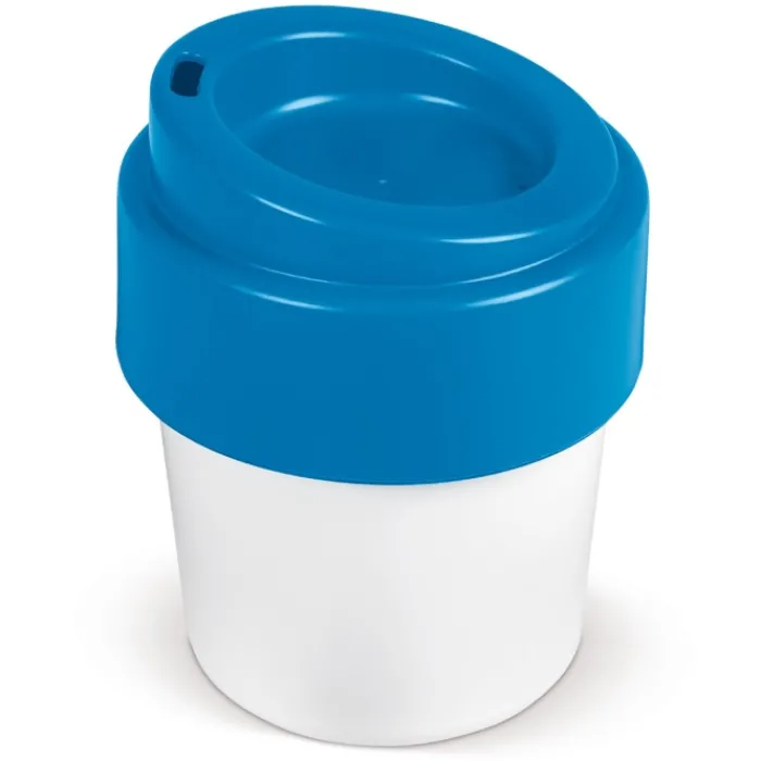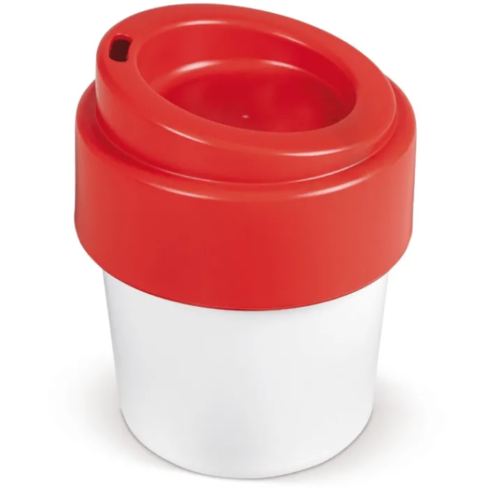 Tazza bianca con tappo colorato da 240ml resistente, infrangibile, impilabile e prodotta in Germania. Realizzata al 95% con una bioplastica ricavata dalla canna da zucchero. Conforme alle più rigorose norme di sicurezza alimentare e completamente neutre in termini di gusto e odore. Le tazze sono riutilizzabili e riciclabili al 100%. Il design sofisticato mantiene il caffè caldo e il bordo esterno freddo. Non inserire nel microonde. Non lavare in lavastoviglie.