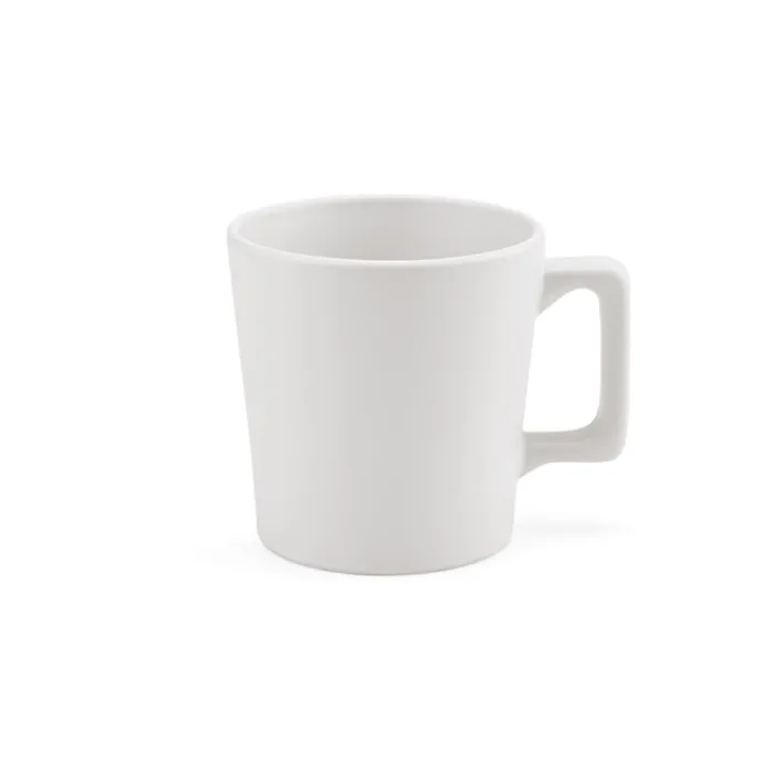 Tazza in ceramica da 270 ml (220 ml utili) con finitura opaca che emana eleganza. Resiste a circa 125 cicli di lavaggio in lavastoviglie. Consegnata nella sua scatola.
