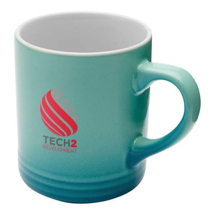 Tazza in ceramica con elegante effetto sfumato. Interno color crema ed esterno lucido. Adatta alla lavastoviglie. Confezionata in scatola regalo di cartone riciclato. Capacità: 330 ml.