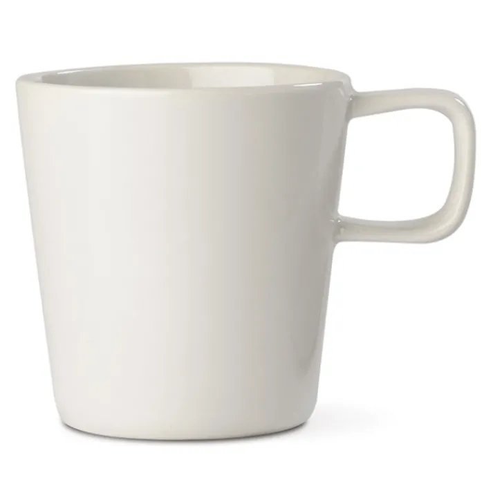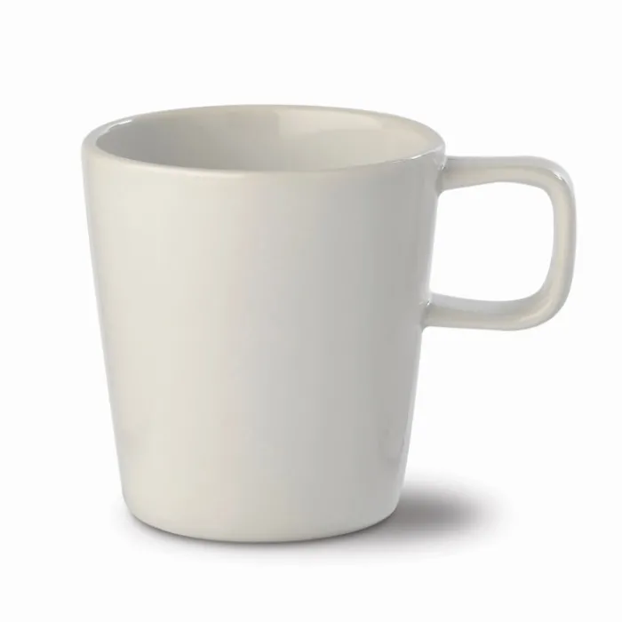 Tazza di porcellana dalla forma conica e manico sottile. Ideale per la macchina da caffè con cialde. Può essere lavata in lavastoviglie e inserita nel microonde. Capacità: 180 ml.