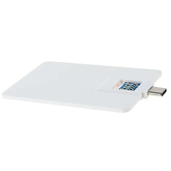 Tessera USB 3.0 con un connettore USB ed uno di tipo C. Personalizzabile su entrambi i lati. È possibile trasferire i dati da uno smartphone Android, ad un portatile o ad un computer fisso. Componenti provenienti dalla Cina ed assemblaggio in Olanda.