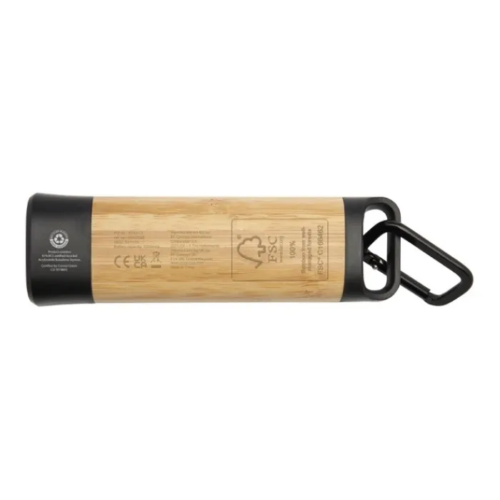 Torcia realizzata in bambù certificato e per il 41% in plastica riciclata certificata RCS. Dotata di una potente sorgente luminosa COB da 3 W, con 3 diverse modalità di illuminazione, produce 80 lumen di luce con una distanza del fascio luminoso fino a 100 metri a piena carica. Dotata di una batteria agli ioni di litio 18.650 ad alta capacità da 1.200 mAh, la torcia garantisce durata e affidabilità, producendo tra le 3,5 e le 4,5 ore di illuminazione continua con una sola carica. Comprende un moschettone in alluminio che consente di agganciarla facilmente a zaini, cinture o attrezzi, così potrete portarla sempre con voi in campeggio o durante le escursioni. Poiché il bambù è un materiale naturale, potrebbero esserci lievi variazioni di colore e dimensioni tra una torcia e l’altra. Include un cavetto di ricarica TPE Tipo-C da 30 cm ed è confezionata in una confezione regalo STAC realizzata con materiali provenienti da fonti sostenibili.