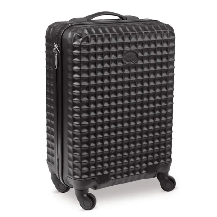 Trolley da cabina con scomparto principale completamente foderato e cinghie elastiche per mantenere il contenuto in posizione. Dispone di quattro ruote. Confezionato singolarmente in una lussuosa confezione regalo.