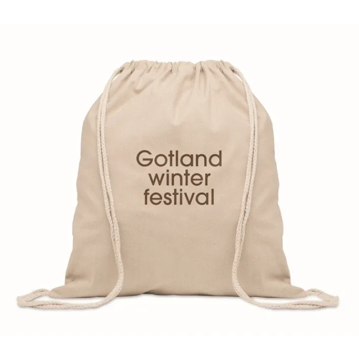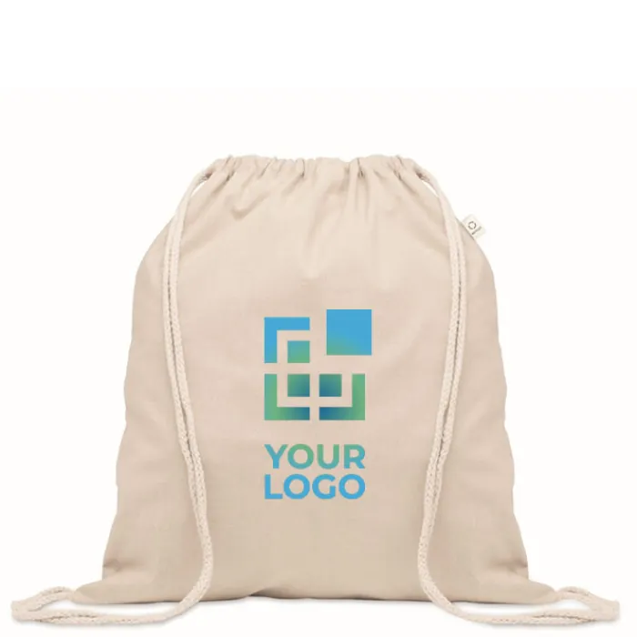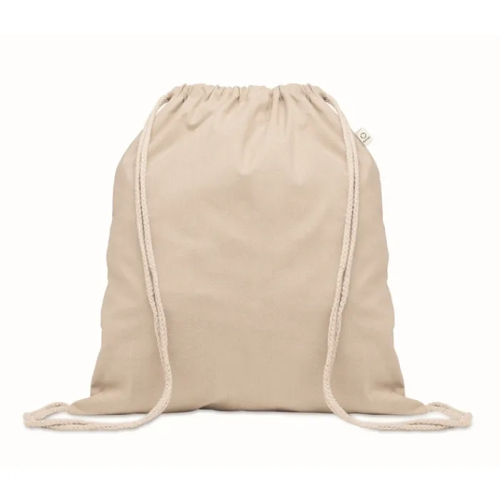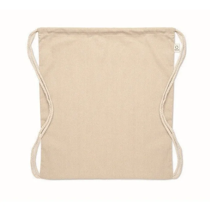 Zainetto a sacca realizzato con cotone riciclato pre-consumo al 70% ed rPET al 30% da 140 gr/m².