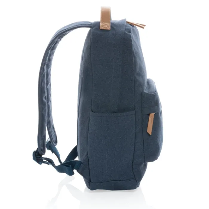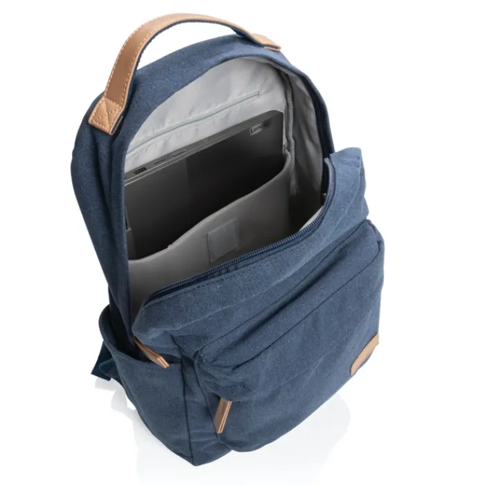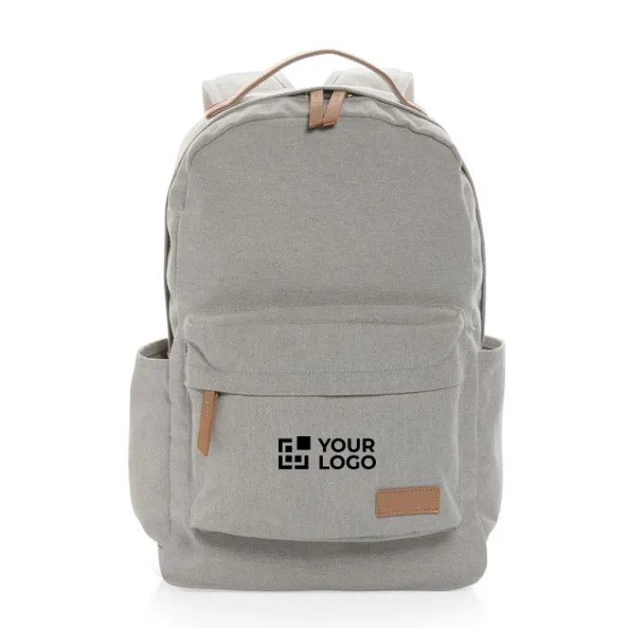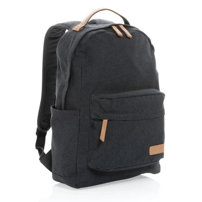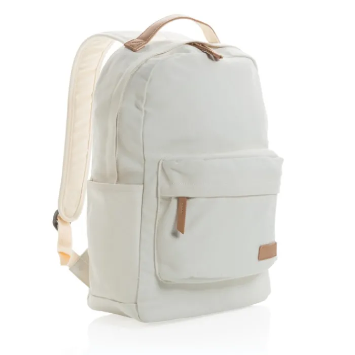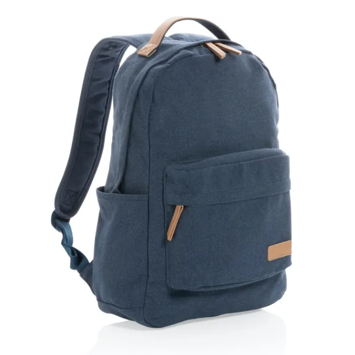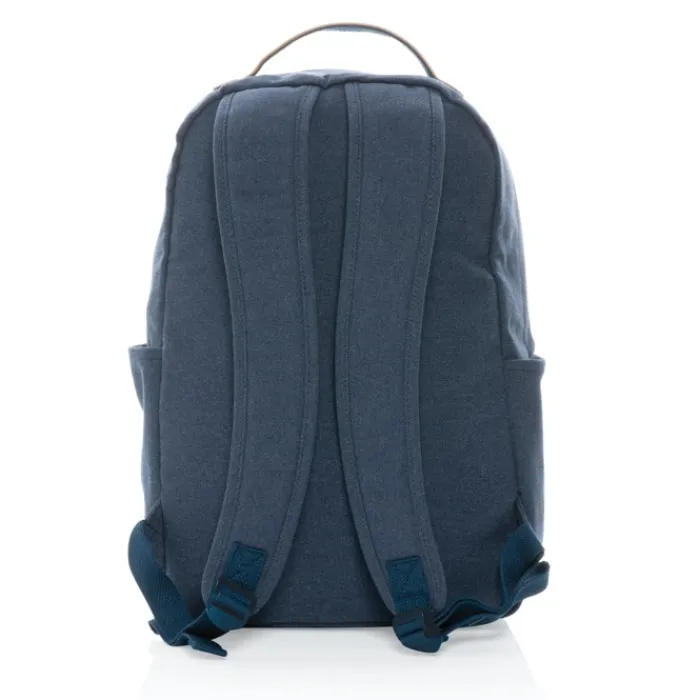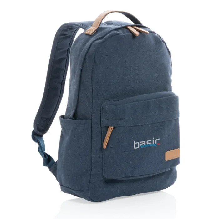 Zaino in tela riciclata 16 once, dotato di una tasca imbottita per laptop da 14” e di una spaziosa tasca anteriore e posteriore per riporre tuto ciò che ti serve per affrontare la giornata. Composizione 60% cotone riciclato e 40% poliestere riciclato. Fodera in poliestere riciclato 150D. Include tracciante AWARE™ che garantisce l’uso reale di materiali riciclati. Ogni zaino è stato prodotto risparmiando 1257,2 litri di acqua. Il 2% del ricavato della vendita di questi zaini sarà devoluto a Water.org.