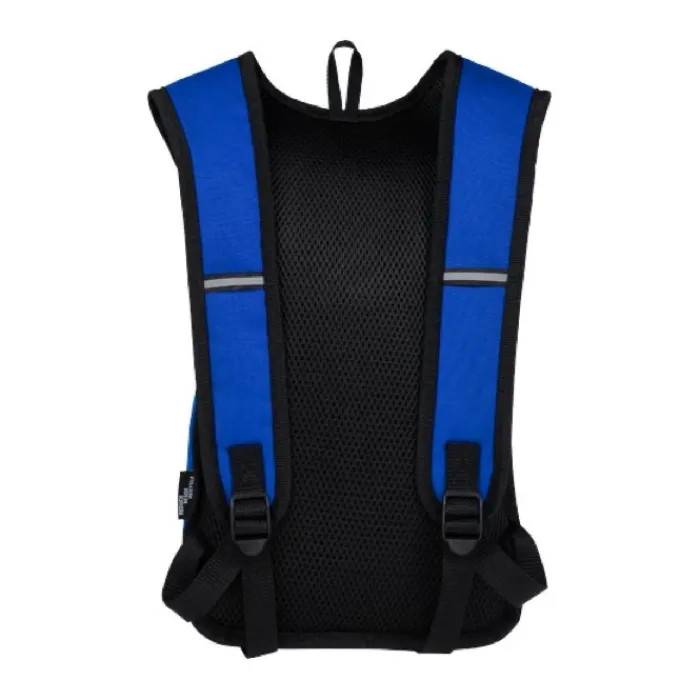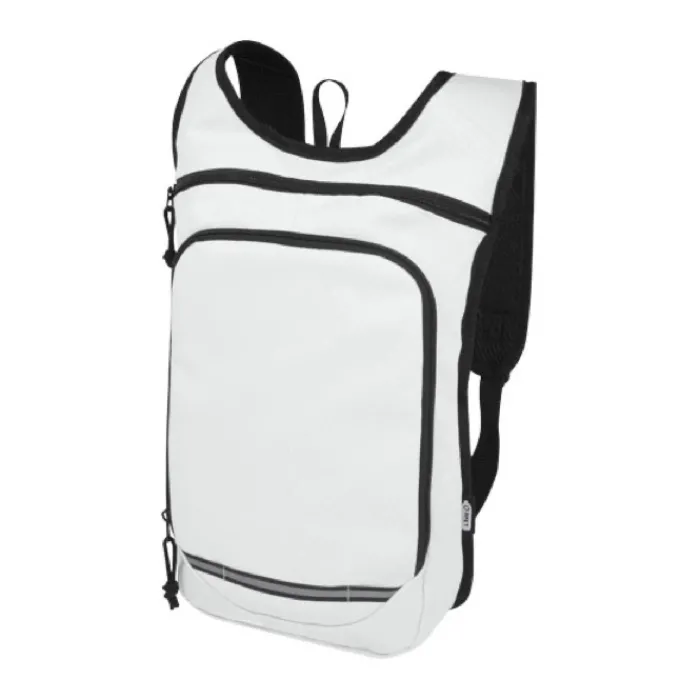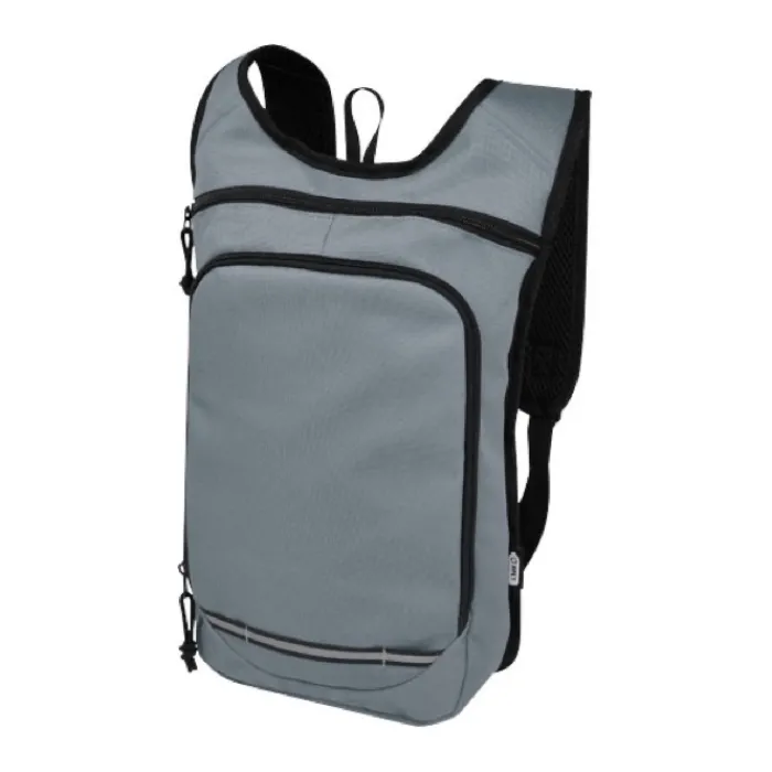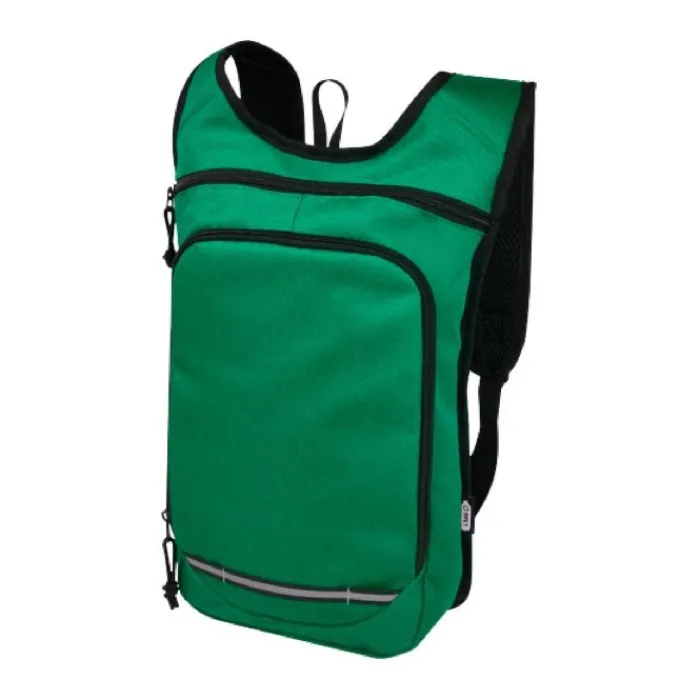 Zaino realizzato in PET riciclato certificato GRS e tessuto idrorepellente. Presenta una tasca anteriore con zip e uno scomparto principale con cerniera. Grazie alle strisce catarifrangenti per una maggiore visibilità e al retro in rete per il massimo comfort, è un’ottima scelta sostenibile per le attività all’aperto.