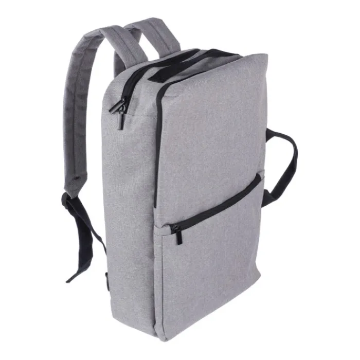 Zaino in poliestere rPET 300 D con fodera interna 210 D, adatto per computer portatile da 15 pollici, a prova di cabina, passante per il trasporto sulla parte superiore, spallacci regolabili, due manici laterali per il trasporto, cinture regolabili nascoste dietro l’imbottitura per il trasporto, scomparto per laptop in velcro, piccolo scomparto con chiusura lampo, retro imbottito ventilato, peso massimo trasportabile circa 8 kg, include etichetta rPET