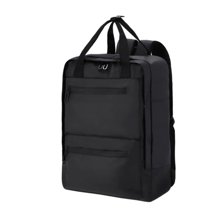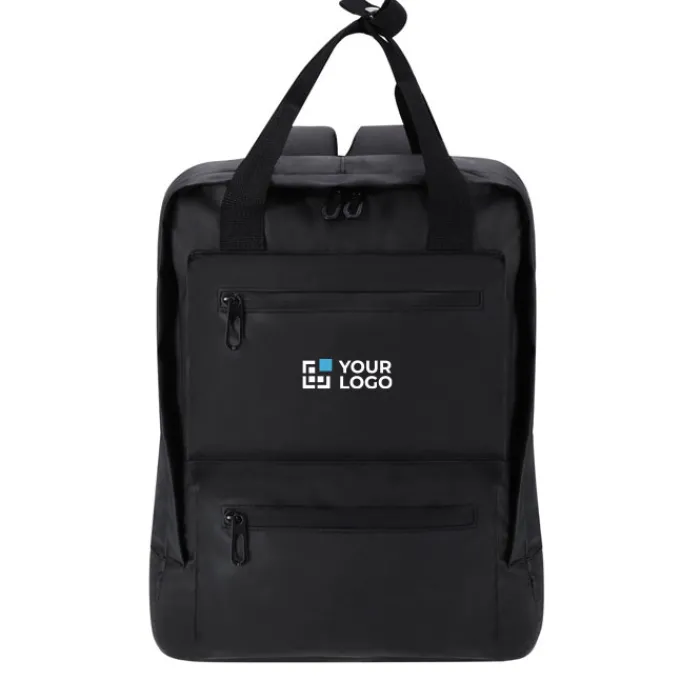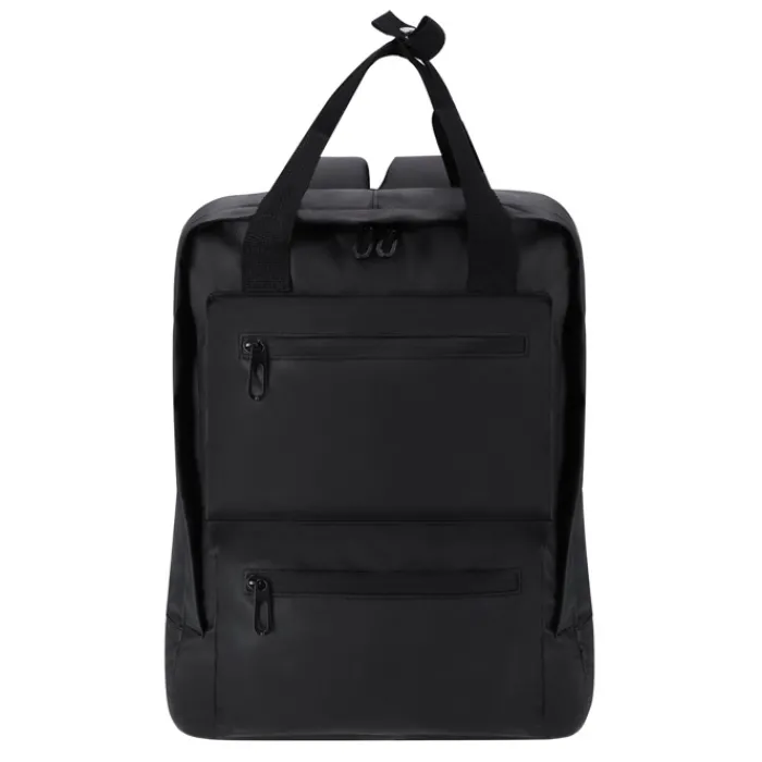 Zaino realizzato in PU resistente. Dotato di un compartimento principale e due tasche frontali per un rapido accesso. Chiusure con cerniera invisibili. Include due tasche laterali e maniglie doppie per il trasporto, rinforzate nella parte superiore con una cinghia di collegamento per un facile trasporto. Dotato di una tasca interna imbottita per portatili fino a 15 pollici e una tasca per tablet fino a 10 pollici. Spallacci e schienale imbottiti, traspiranti e regolabili.