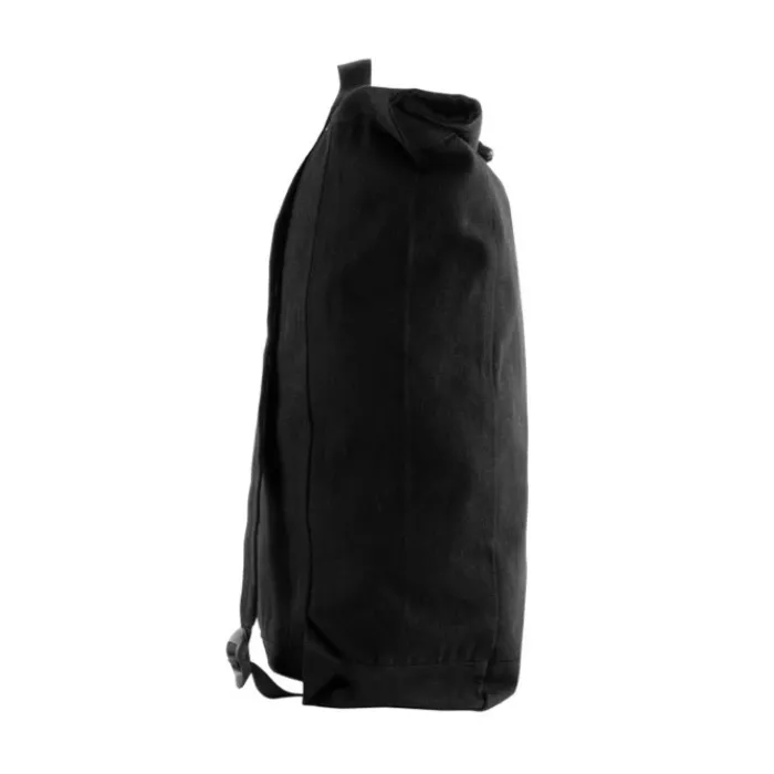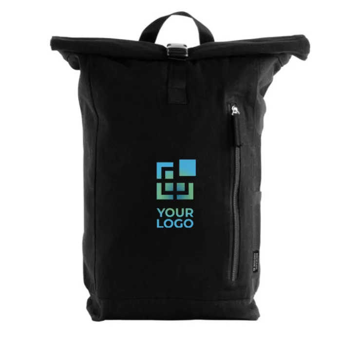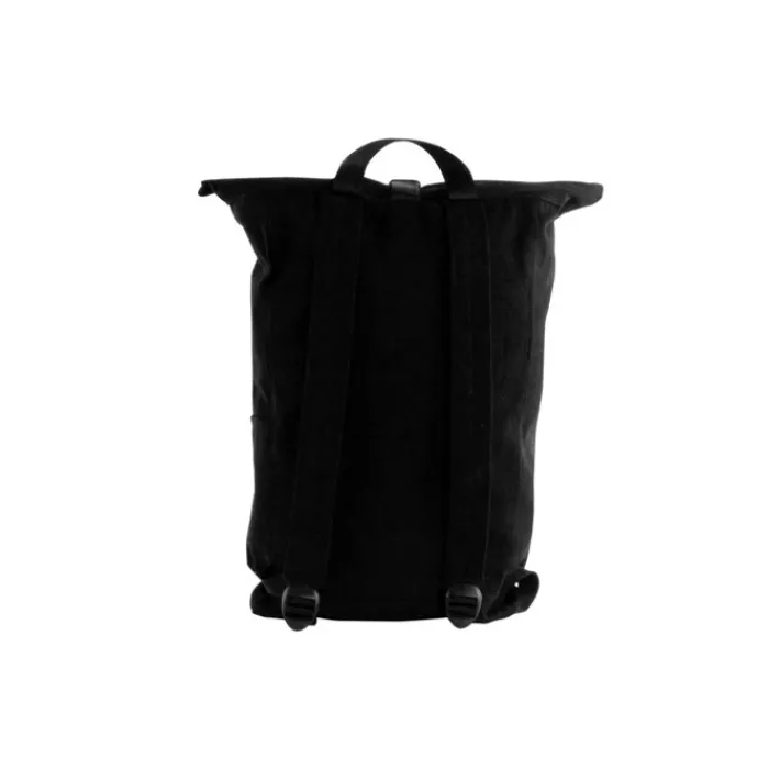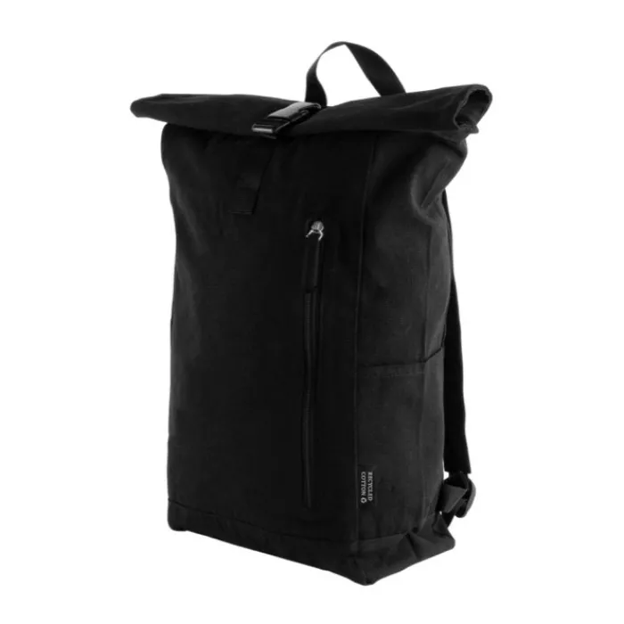 Zaino roll-top realizzato in canvas di cotone riciclato da 280 gr/m². Ha una tasca frontale cerniera laterale e una tasca interna per computer portatile.