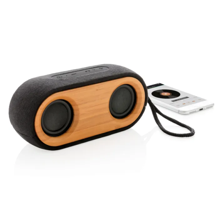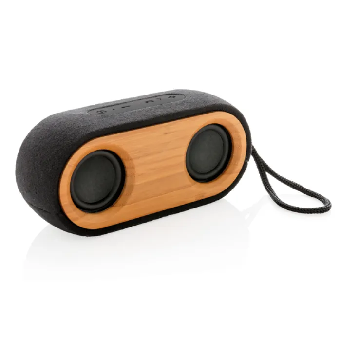 Potente altoparlante da 10 W con un suono incredibile. Scocca realizzata in resistente bambù e tessuto composto da una miscela di cotone organico 30%, canapa 40% e PET riciclato 30%. Batteria da 2.200 mAh con autonomia di 6 ore. Tecnologia bluetooth 4.2 e portata di 10 metri. Presentato in una scatola.