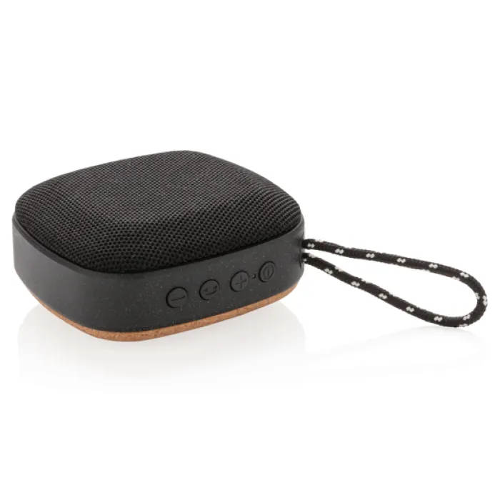 Mini altoparlante sostenibile da 5 W. Realizzato in resistente tessuto impermeabile e sughero. Grado di impermeabilità IPX 5. BT 4.2. Batteria da 1000 mah con autonomia di 8 ore. Distanza operativa 10 metri.