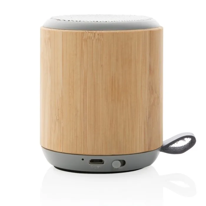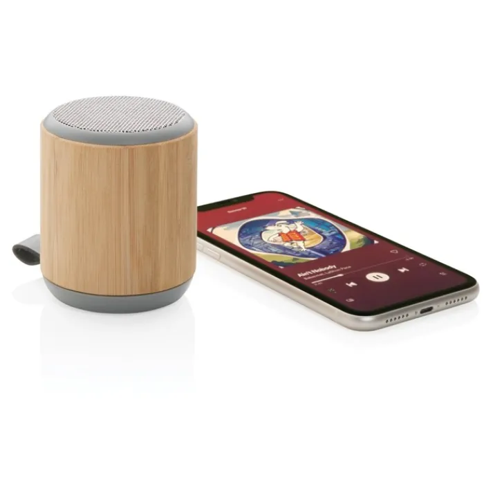 Altoparlante in bambù e ABS da 3 W con batteria al litio da 300 mAh integrata. Con un tempo di riproduzione di circa 3 ore con una singola carica e una distanza di funzionamento di 10 m con BT5.0.