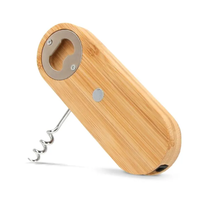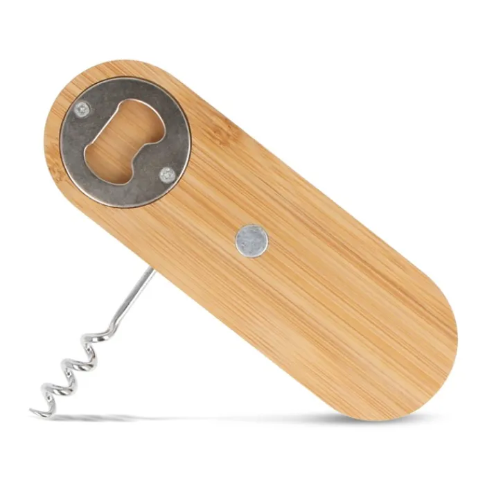Apribottiglie in bambù con vite autofilettante per poter aprire i tappi di sughero. Realizzato in bambù sostenibile, è uno strumento elegante ed ecologico che semplifica l’esperienza delle bevande.