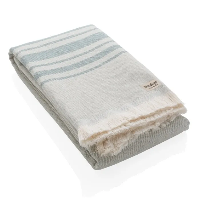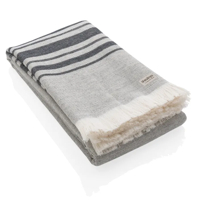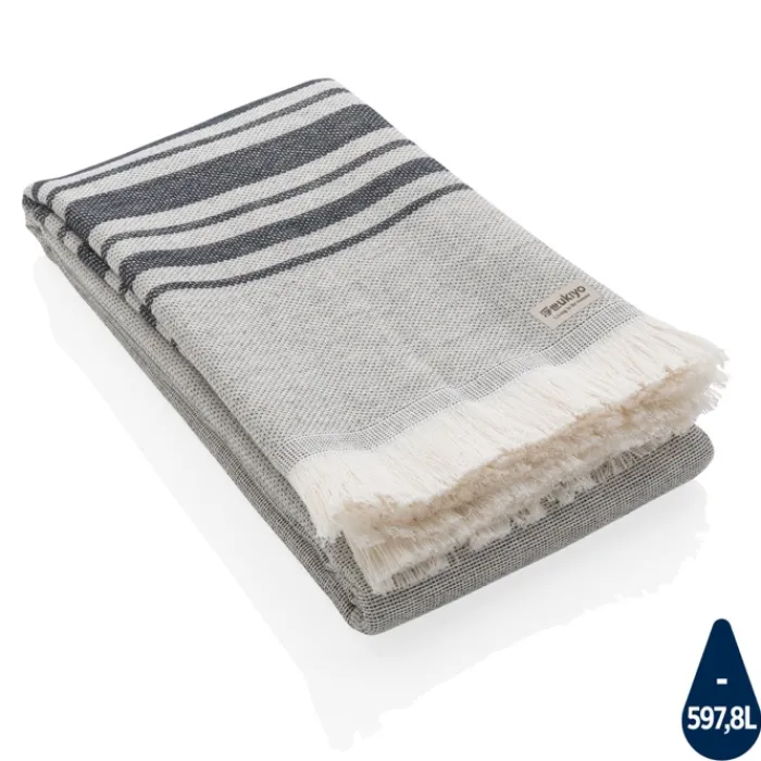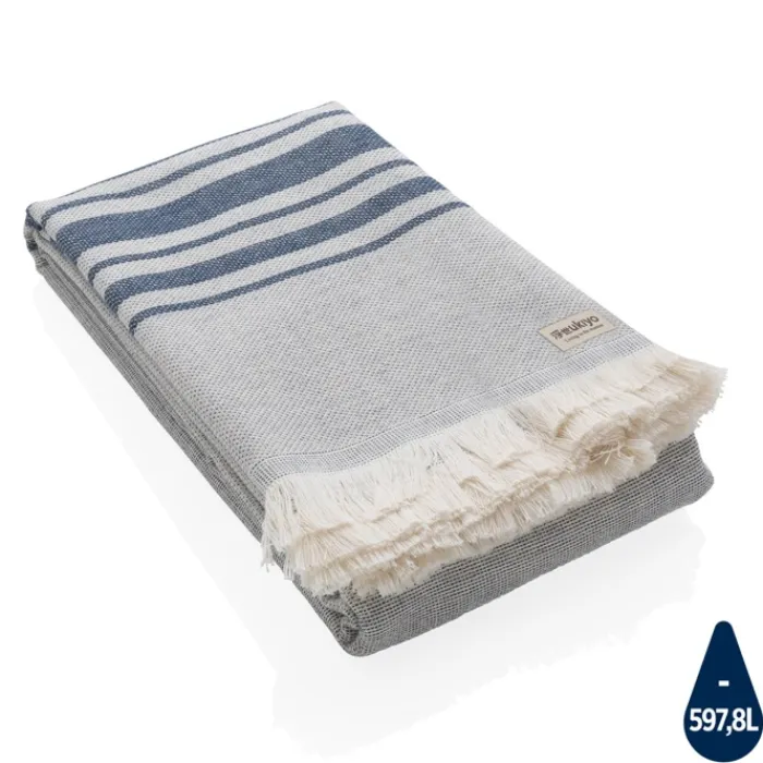 Asciugamano leggero, altamente assorbente, resistente alla sabbia e ad asciugatura rapida è uno dei migliori asciugamani sostenibili in circolazione. È multifunzionale: puoi usarlo come tovaglia durante i picnic, come coperta per bambini o come telo per lo yoga, la spiaggia o la palestra. Il materiale sottile lo rende ultraportatile e facile da trasportare. È composto per l’88% da cotone certificato OEKO-TEX (non vengono utilizzate sostanze nocive o coloranti durante il processo di produzione) e per il 12% da cotone riciclato, super morbido e setoso al tatto. Con tracciante AWARE™ che convalida l’uso genuino del cotone riciclato. Ogni asciugamano consente di risparmiare 597,8 litri di acqua. Il 2% dei profitti derivante dalla vendita di questi asciugamani sarà donato a Water.org. Prodotto in Portogallo.