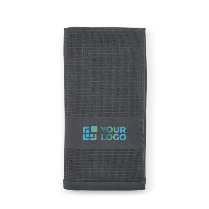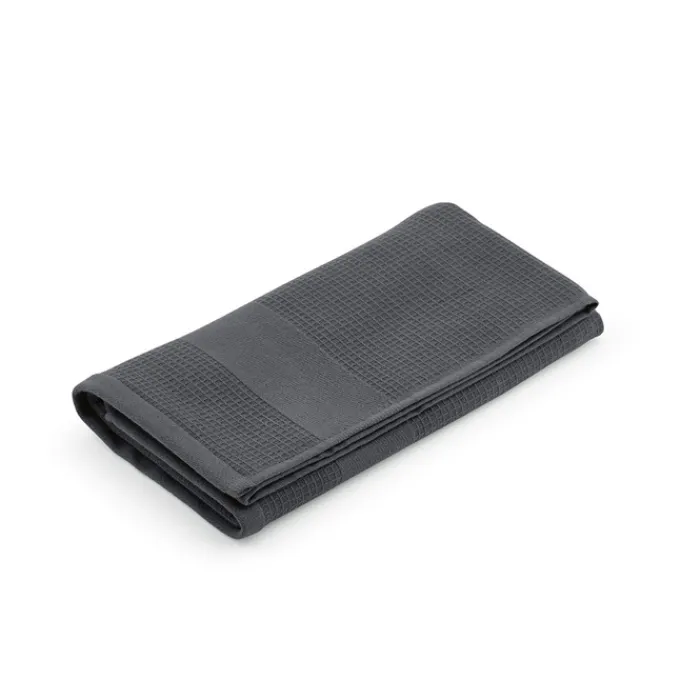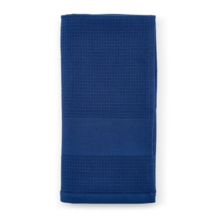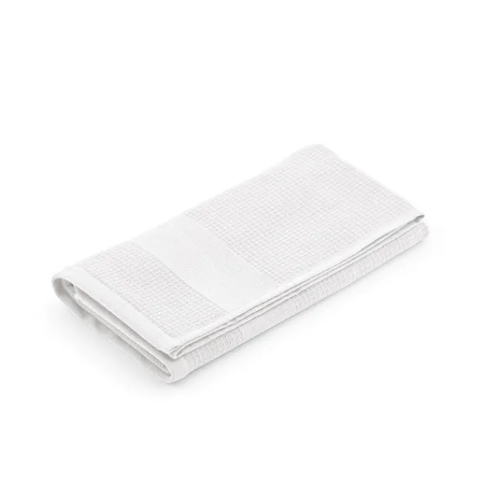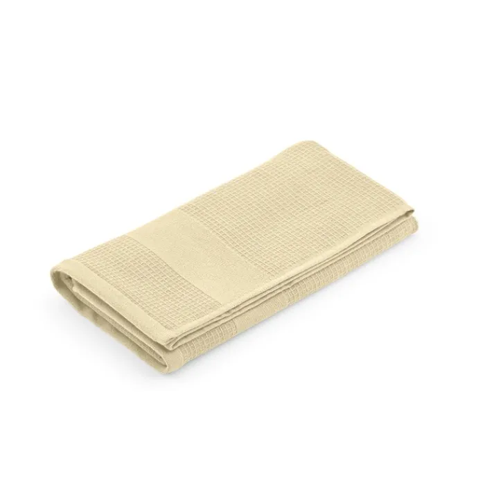Asciugamano in cotone riciclato (60% cotone riciclato e 40% cotone) da 500 g/m² con trama a nido d’ape. Dimensioni: 70 x 140 cm. Confezionato in un sacchetto biodegradabile. Prodotto in Portogallo.