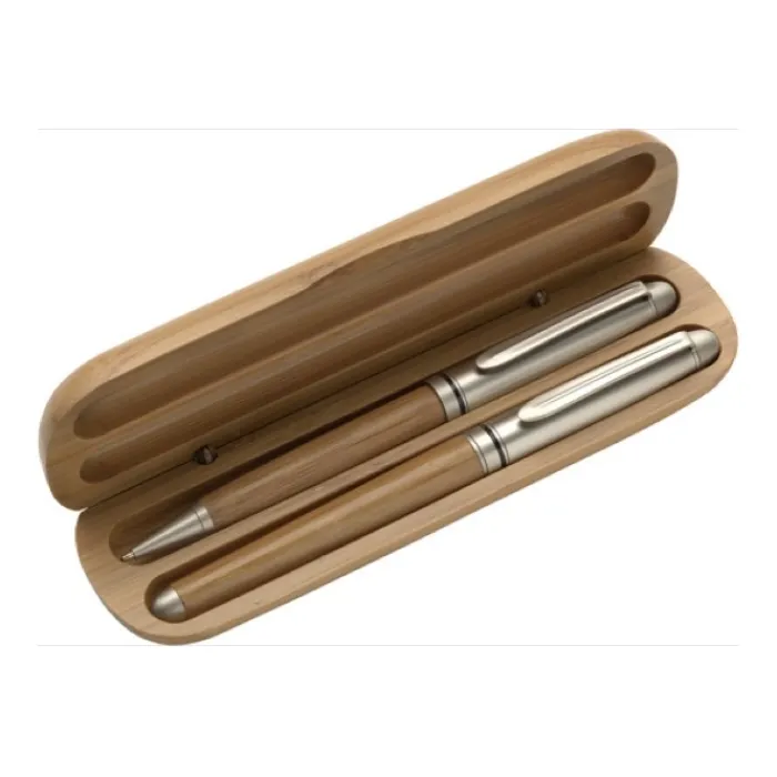Penna a sfera e roller in bambù con astuccio in bambù. Inchiostro blu.