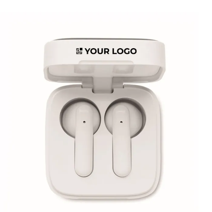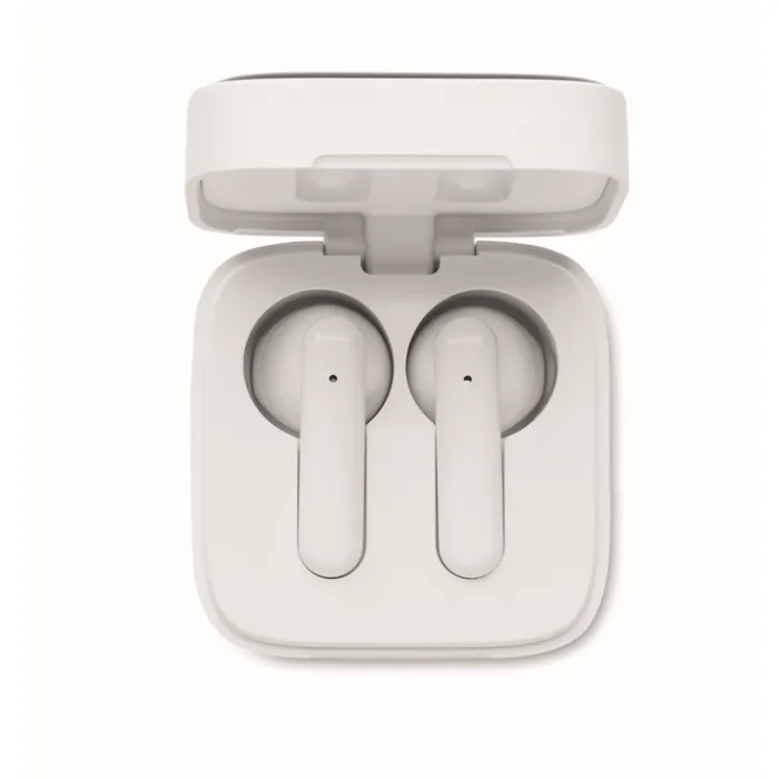Auricolari wireless TWS 5.3 con microfono e batteria da 30 mAh. Autonomia di circa 4h. Ha una batteria a ricarica solare. Associazione automatica. Cavetto di ricarica di tipo C e base di ricarica da 200 mAh.