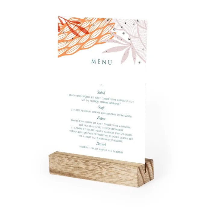 Base di legno per posizionare documenti ed esporli. Questo supporto quadrato in legno è un merchandising pratico e versatile, ideale per matrimoni, dove può essere utilizzato per esporre liste invitati, menù e altro. Perfetto anche per eventi aziendali. Si presta sia alla stampa a colori che all’incisione laser, a seconda dell’effetto visivo desiderato. Nonostante il prezzo contenuto, offre un notevole impatto estetico. Ogni base viene presentata singolarmente in una elegante scatola di design kraft.