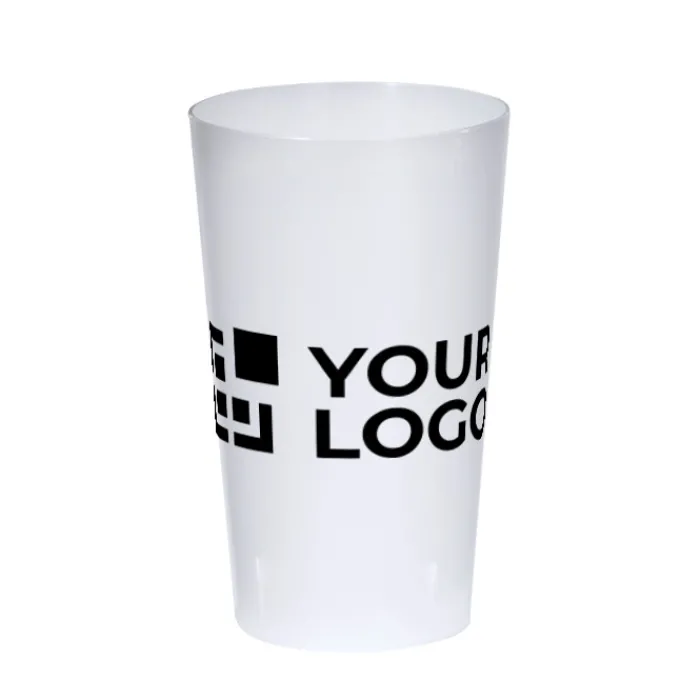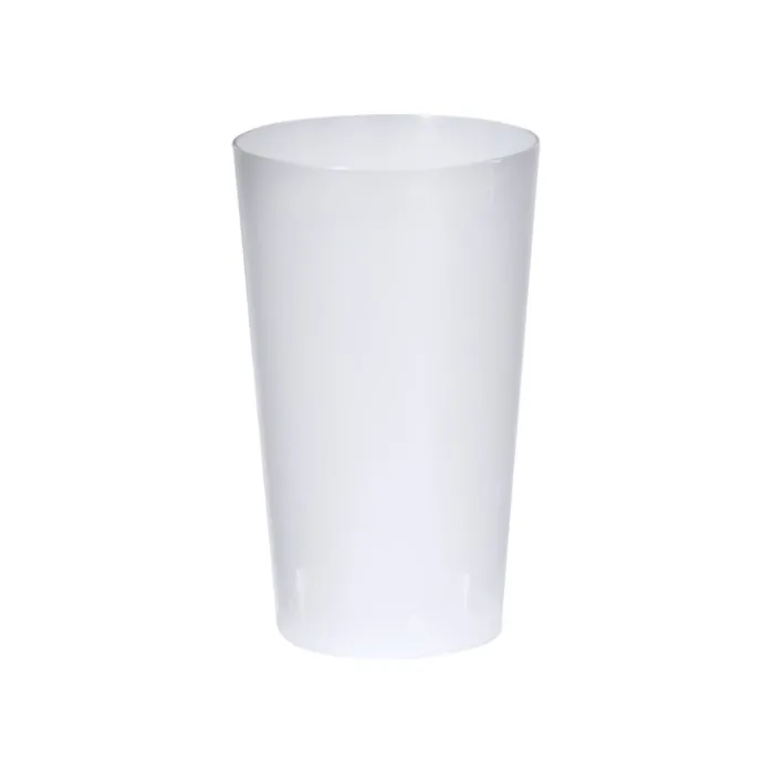 Bicchiere alto riutilizzabile da 330 ml in PP resistente e flessibile, con finitura semitrasparente.