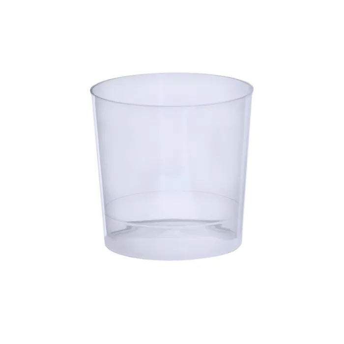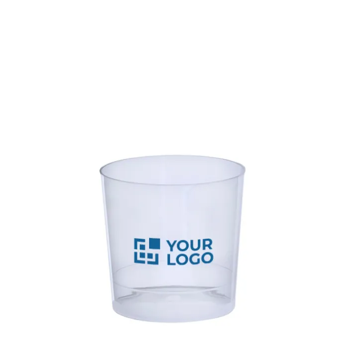 Bicchiere basso riutilizzabile da 330 ml in PP resistente e flessibile, con finitura semitrasparente.