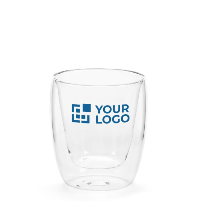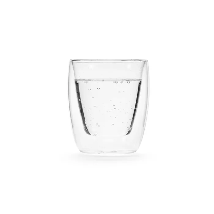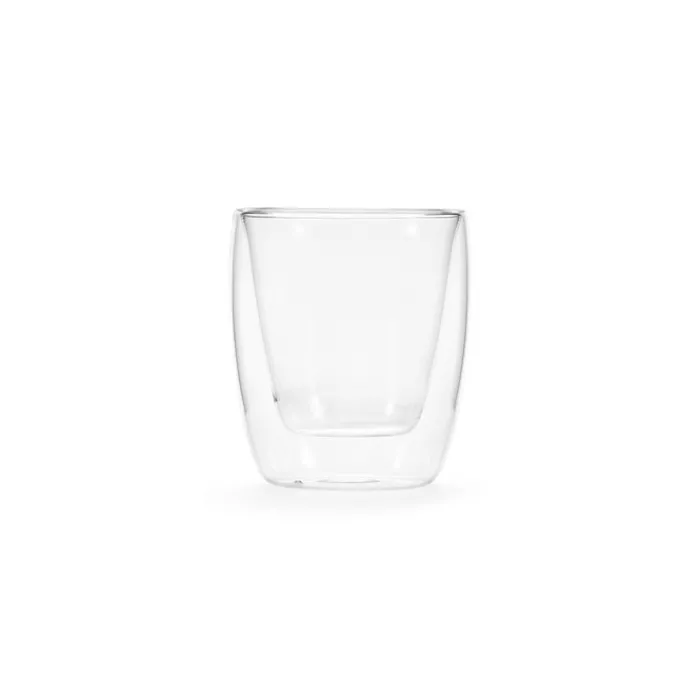 Bicchiere in vetro borosilicato da 250 ml (220 ml utili) con design a doppia parete che mantiene la bevanda alla temperatura perfetta. Viene fornito in una confezione individuale, pronta per essere regalata.