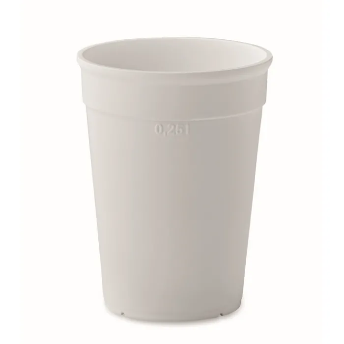 Bicchiere riutilizzabile in PP riciclato di una sola parete. Capacità: 250 ml