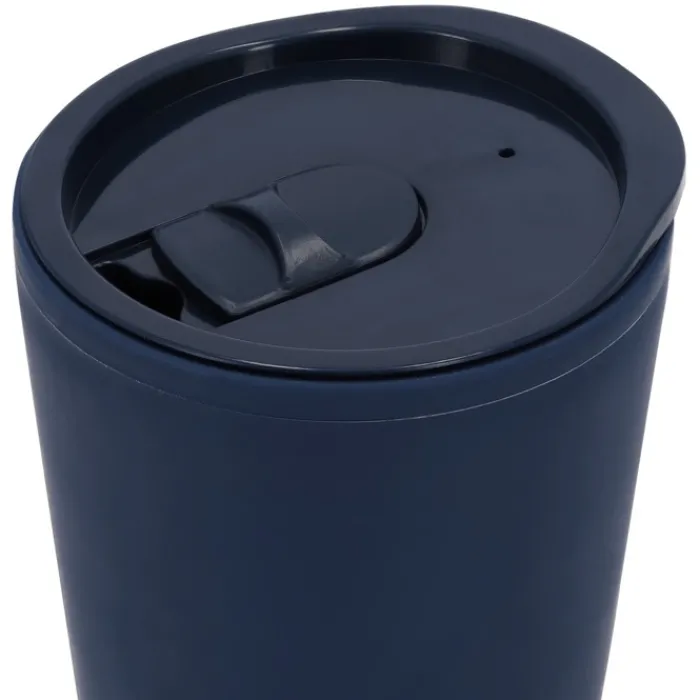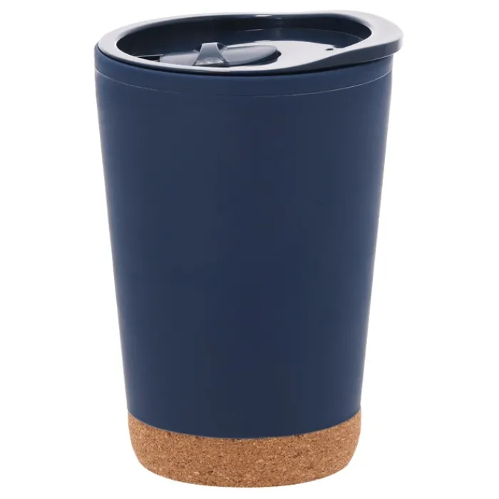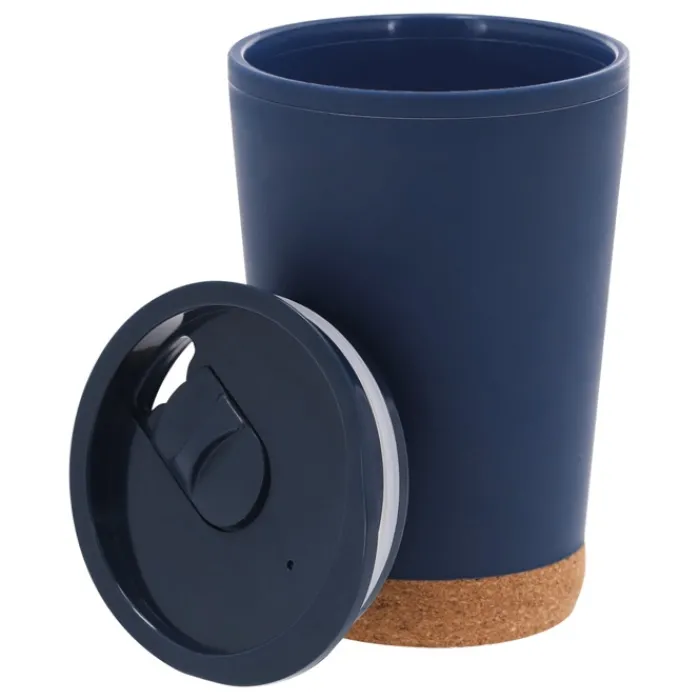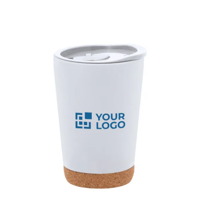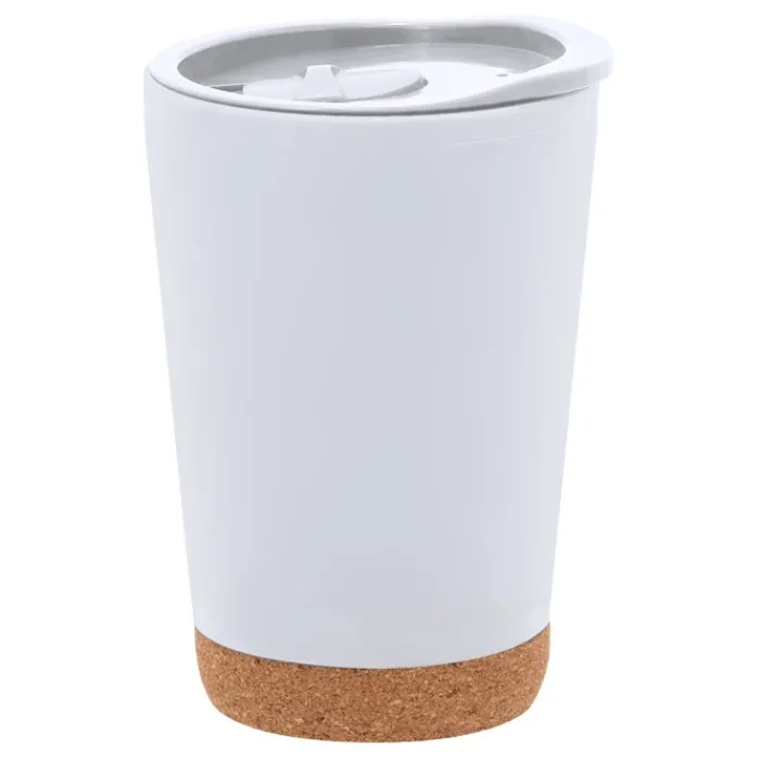 Bicchiere da asporto realizzato in PP riciclato resistente, a doppia parete con una capacità di 260 ml. Base in sughero e tappo di facile apertura, senza BPA, con apertura per bere facilmente. Certificato per uso alimentare. Il PP riciclato è una plastica riciclata e altamente riciclabile, altamente resistente e adatta a molteplici applicazioni. Realizzato con elementi a base vegetale per promuovere l’uso di materie prime naturali e ridurre le emissioni inquinanti.