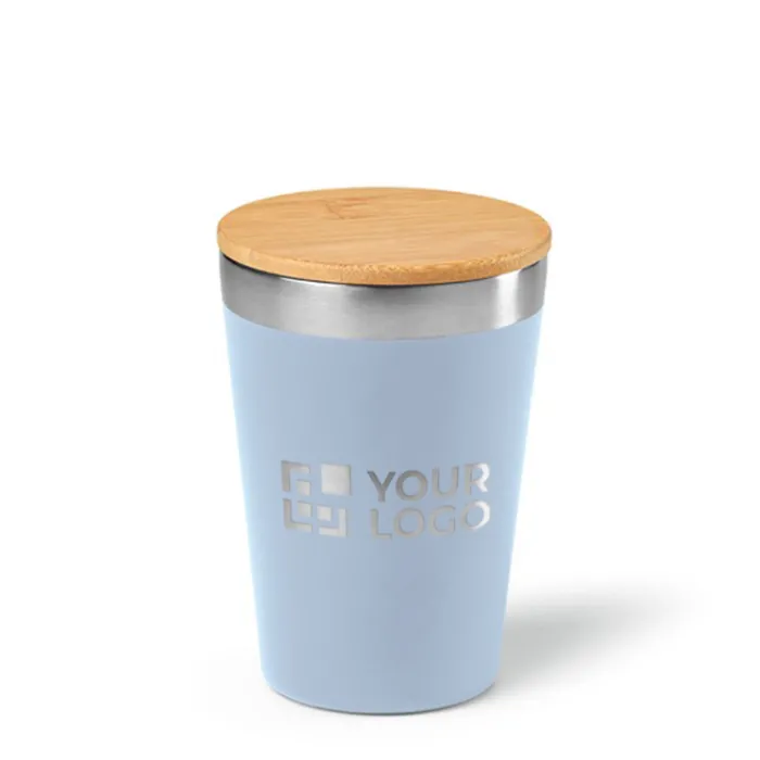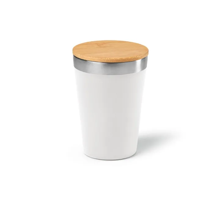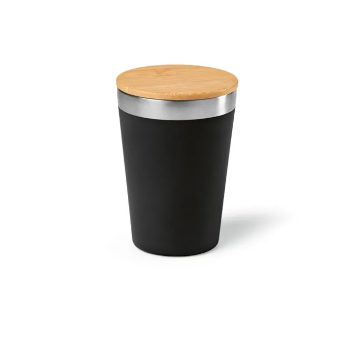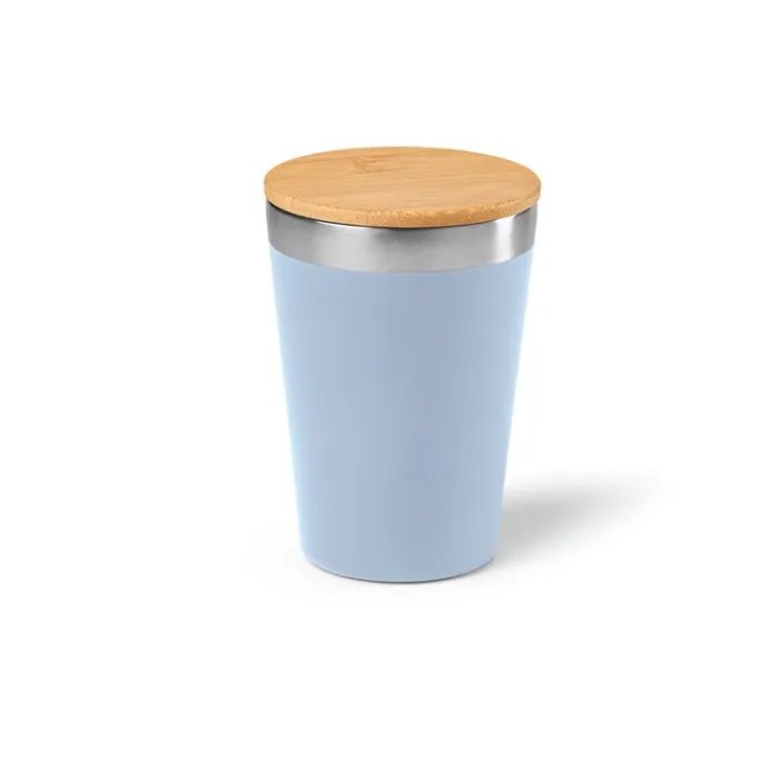 Bicchiere da viaggio in acciaio inossidabile riciclato da 400 ml (300 ml utili). Offre un isolamento a doppia parete per mantenere una temperatura perfetta delle bevande. Il tappo in bambù aggiunge un tocco naturale.